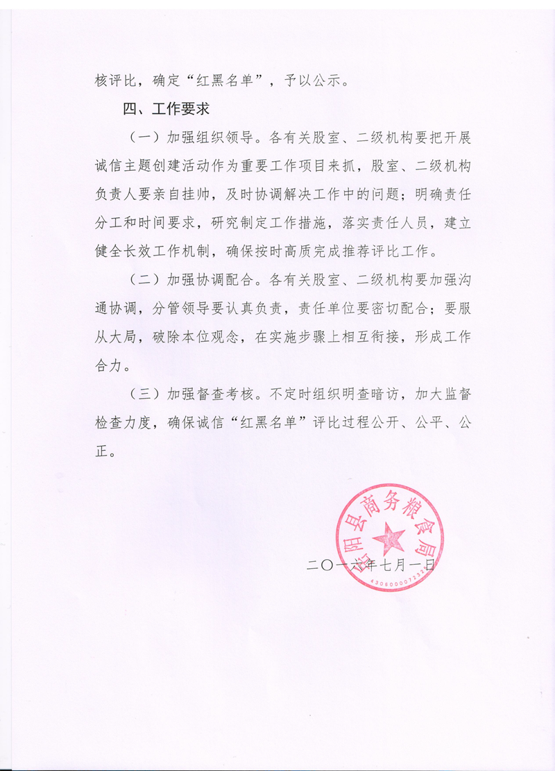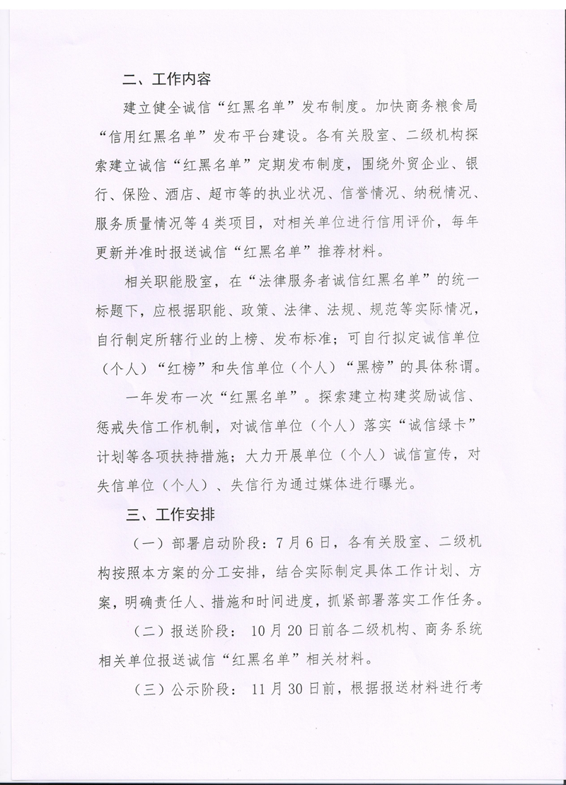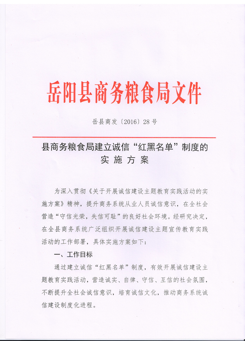 縣商務糧食局建立誠信“紅黑名單”製度的實施方案