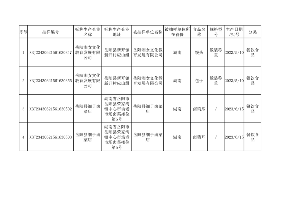 2023年抽檢信息補充公示