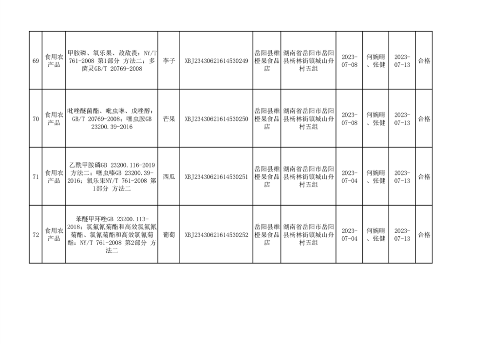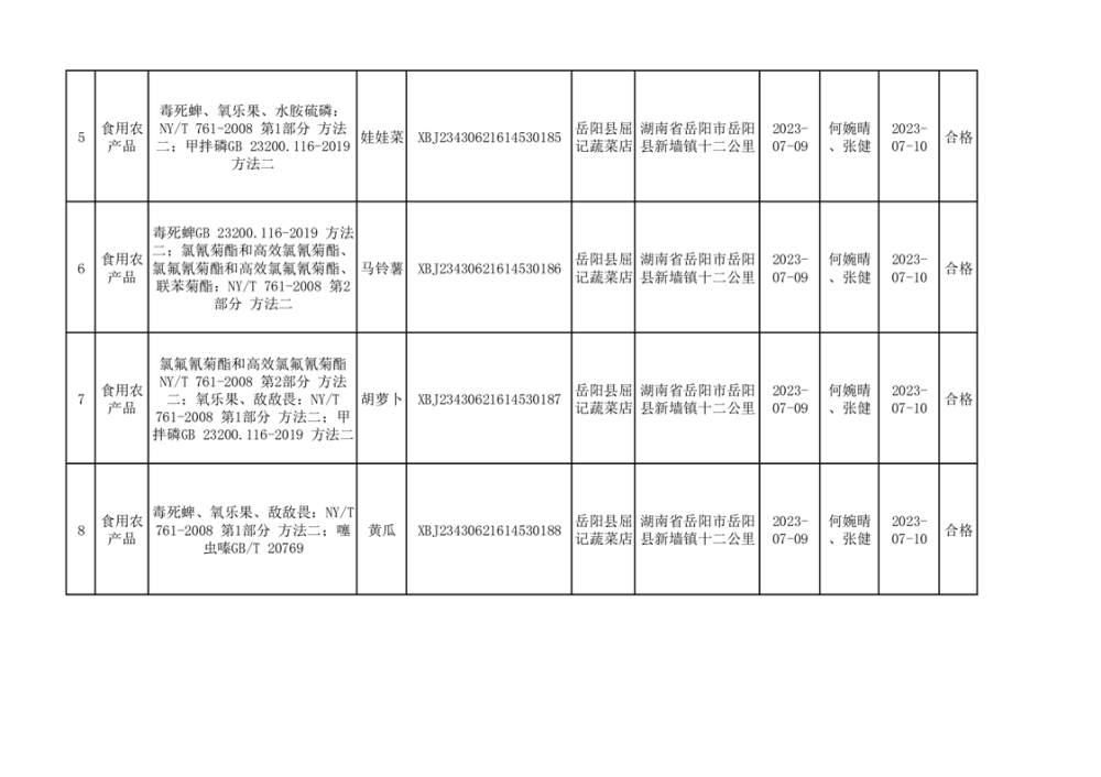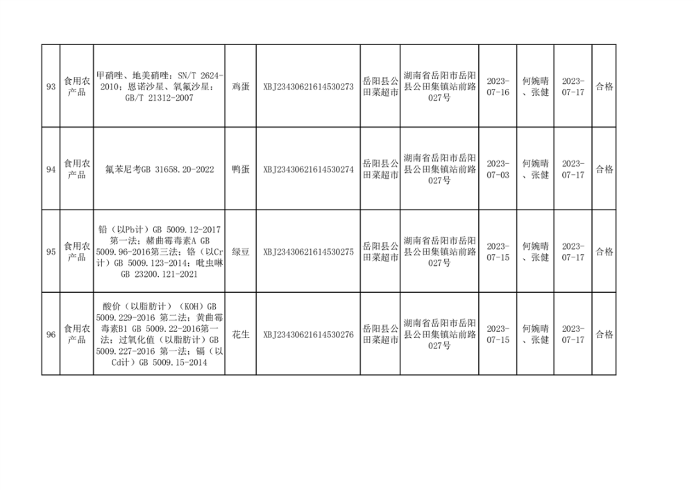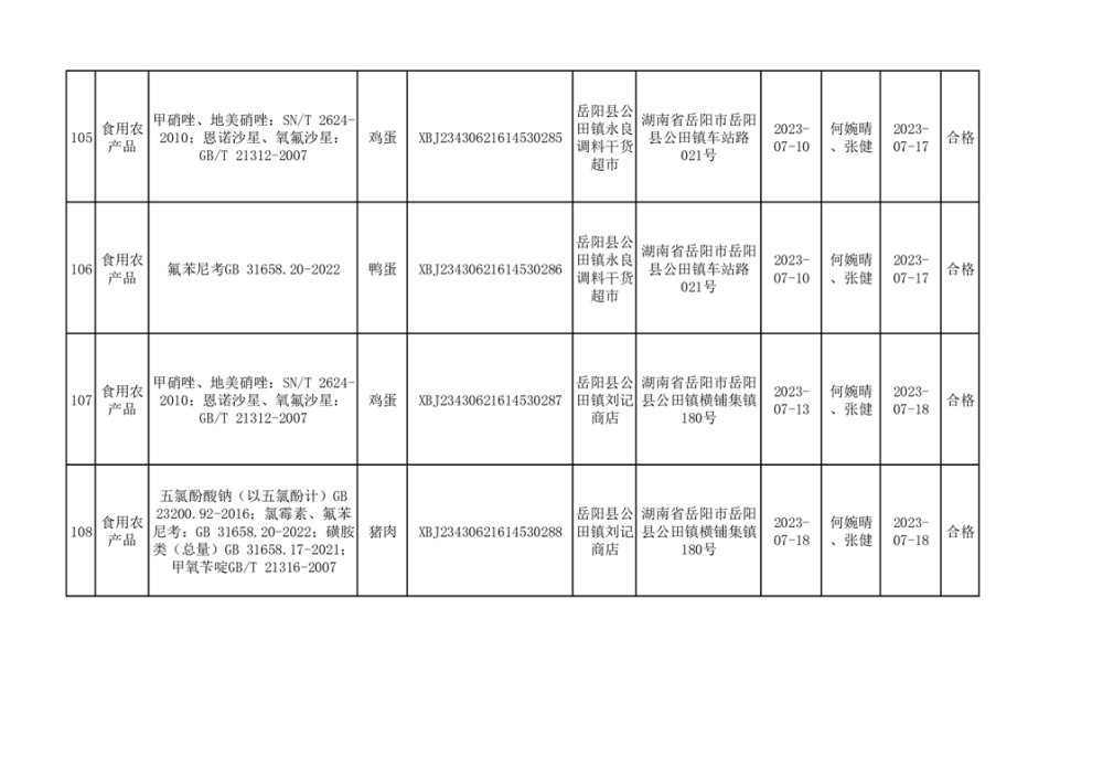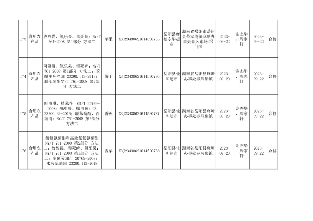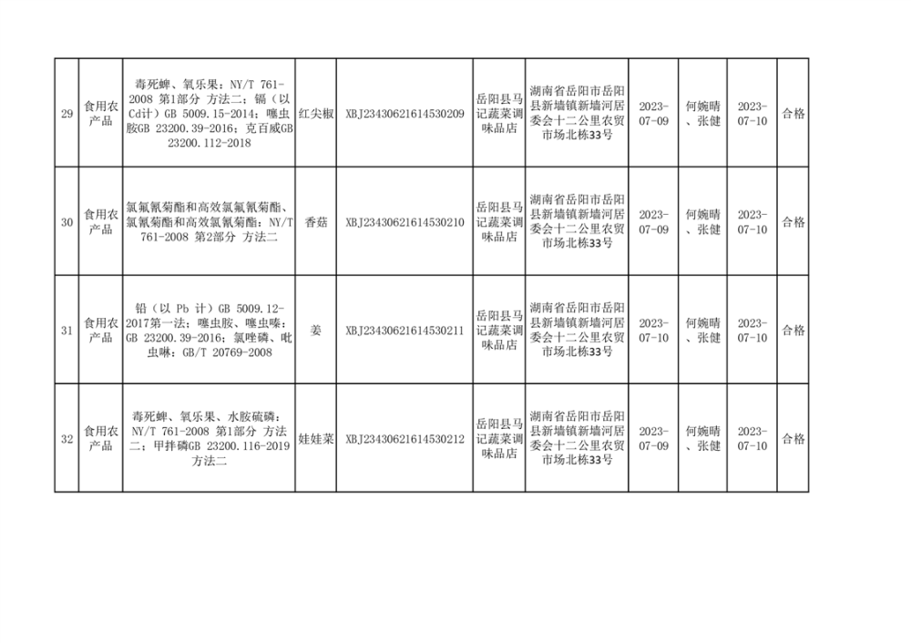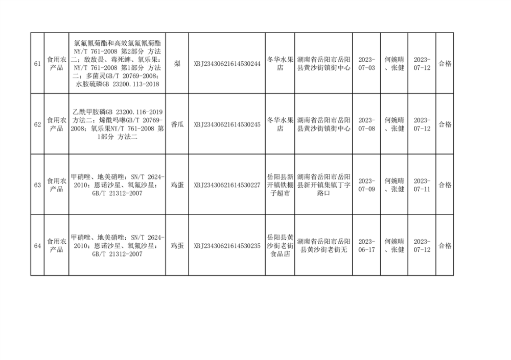 食用農產品合格產品抽檢信息公示(179批次)