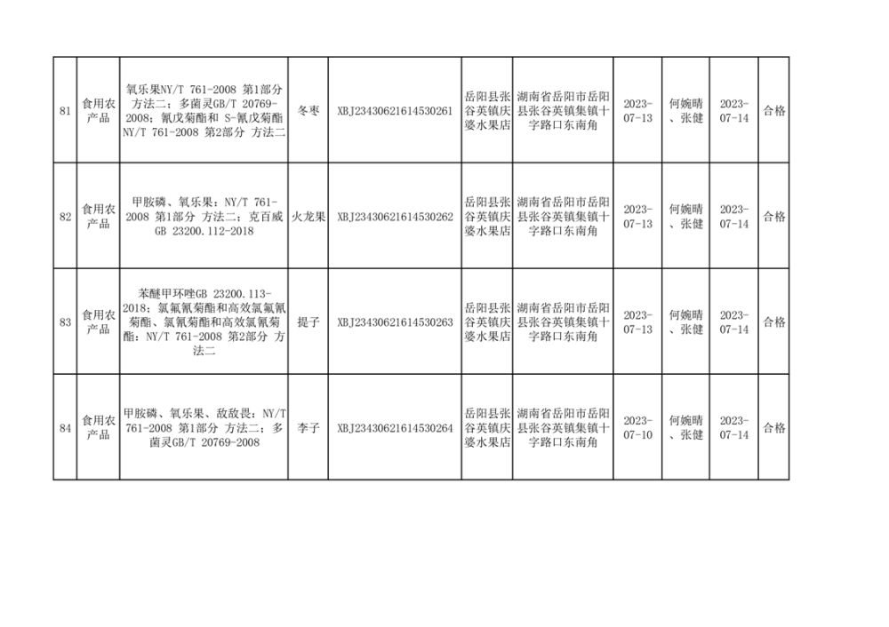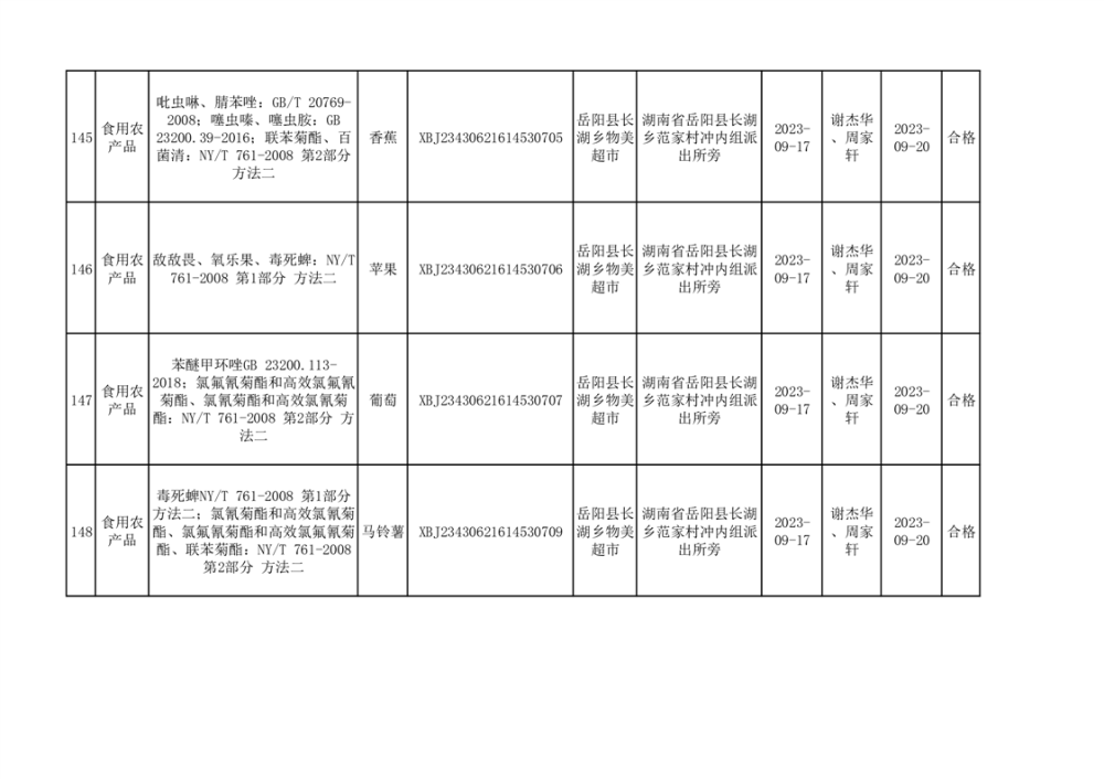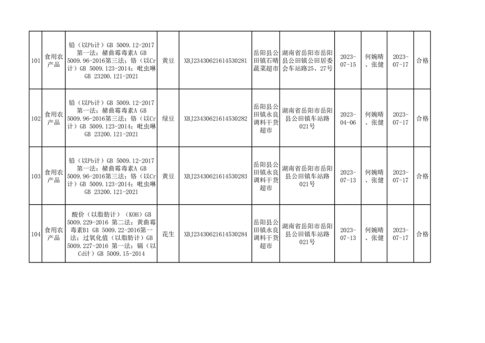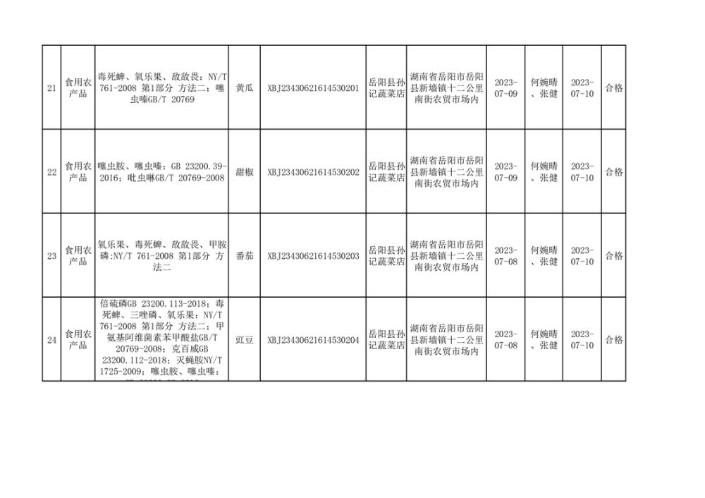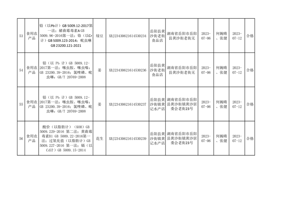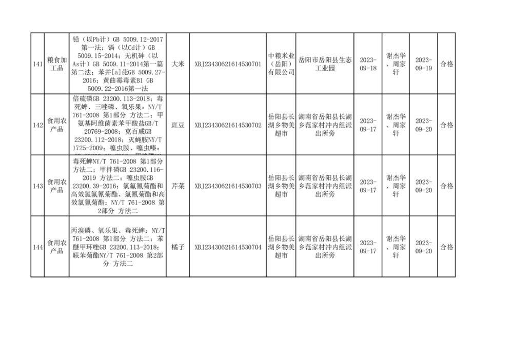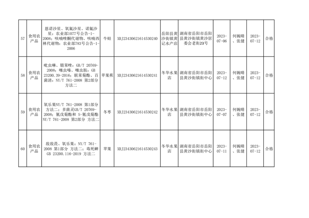 食用農產品合格產品抽檢信息公示(179批次)