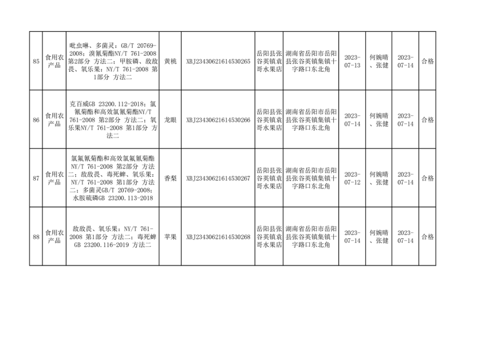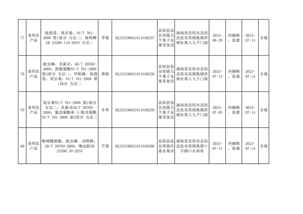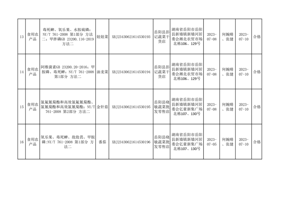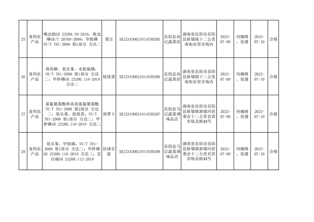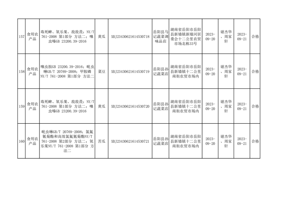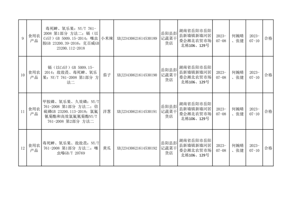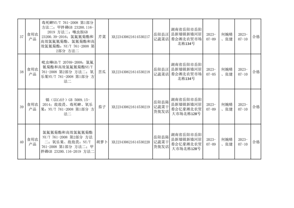 食用農產品合格產品抽檢信息公示(179批次)