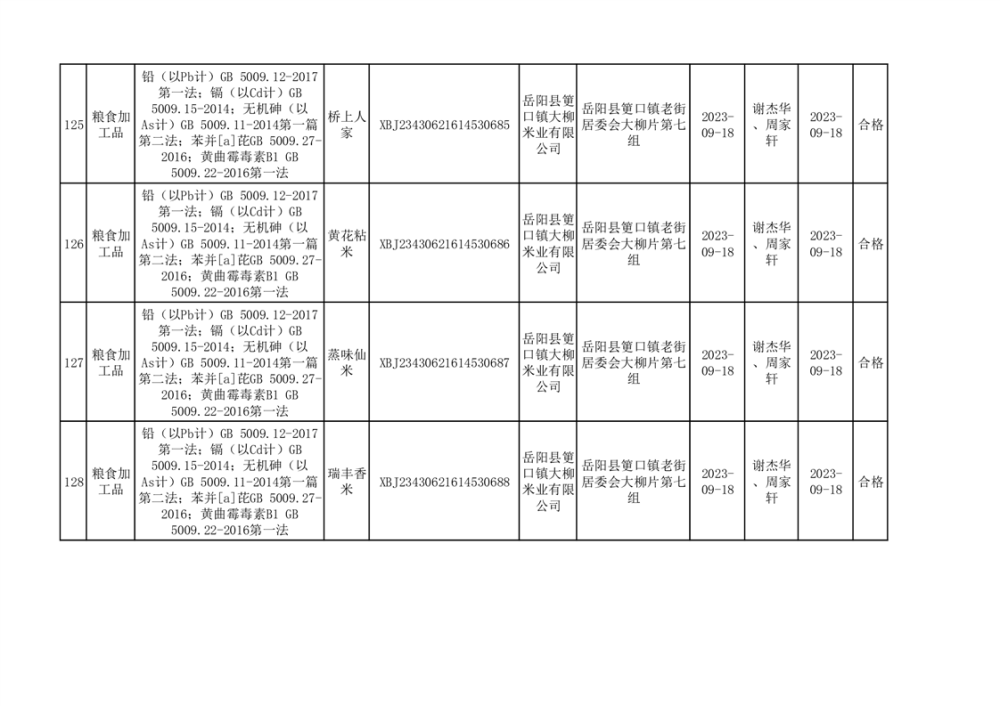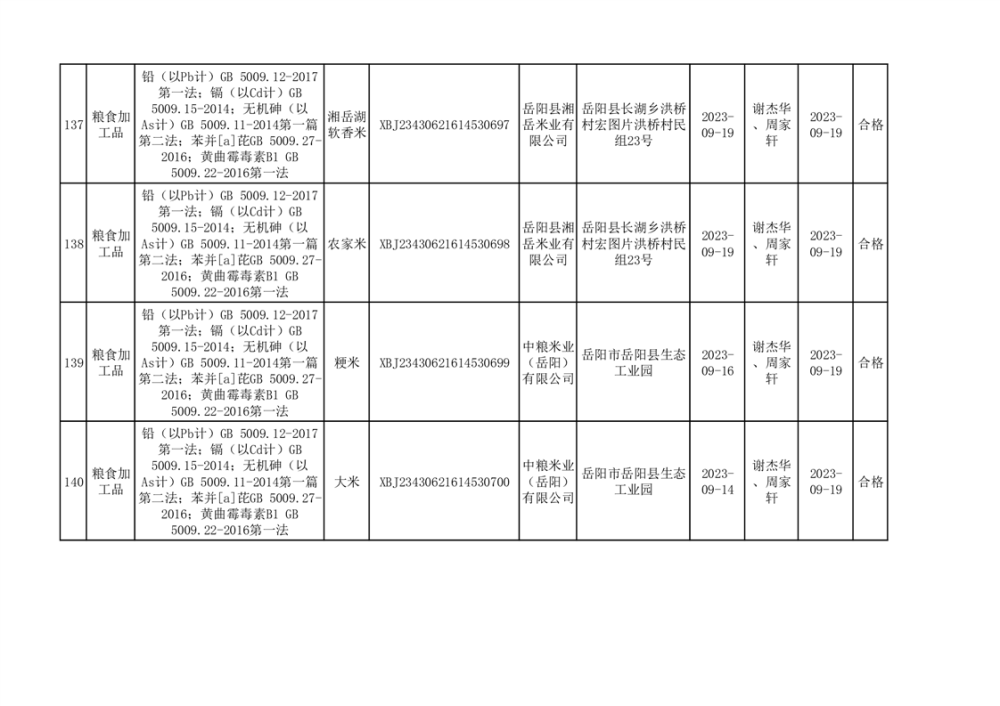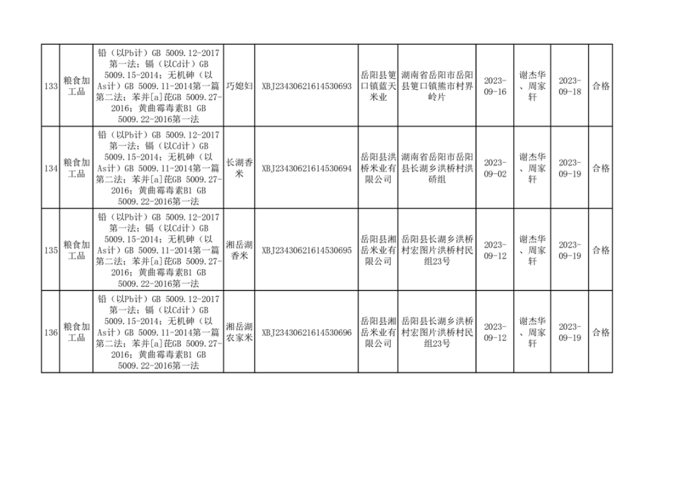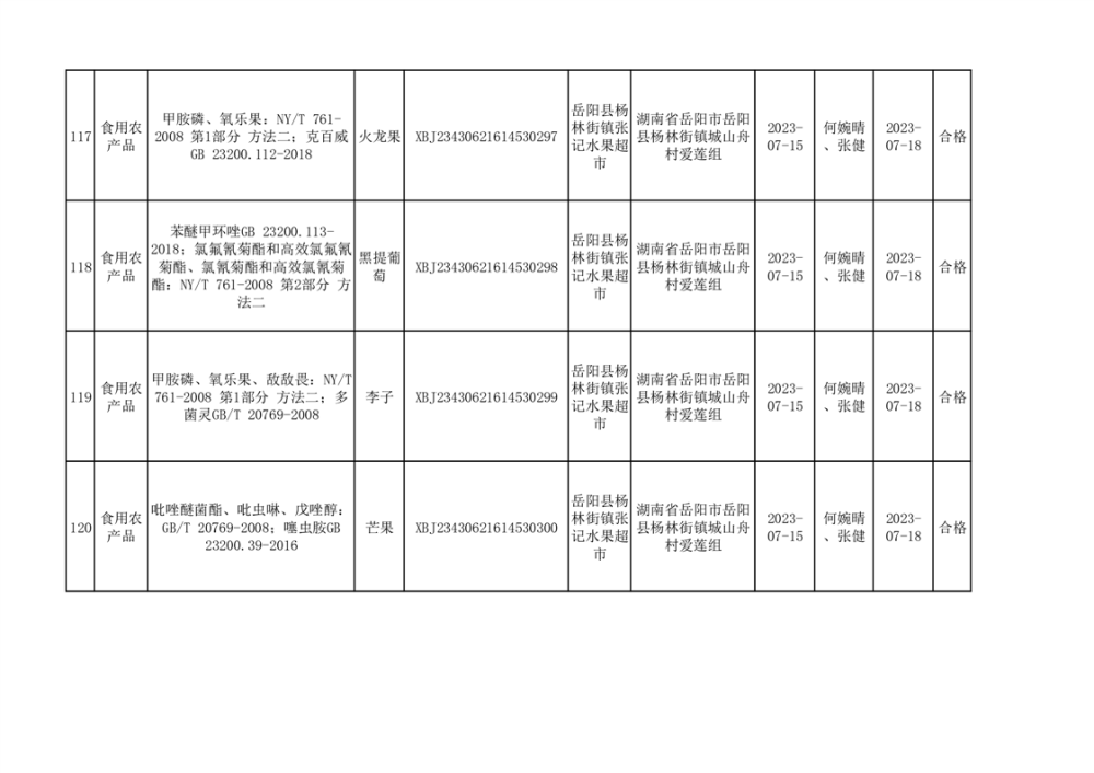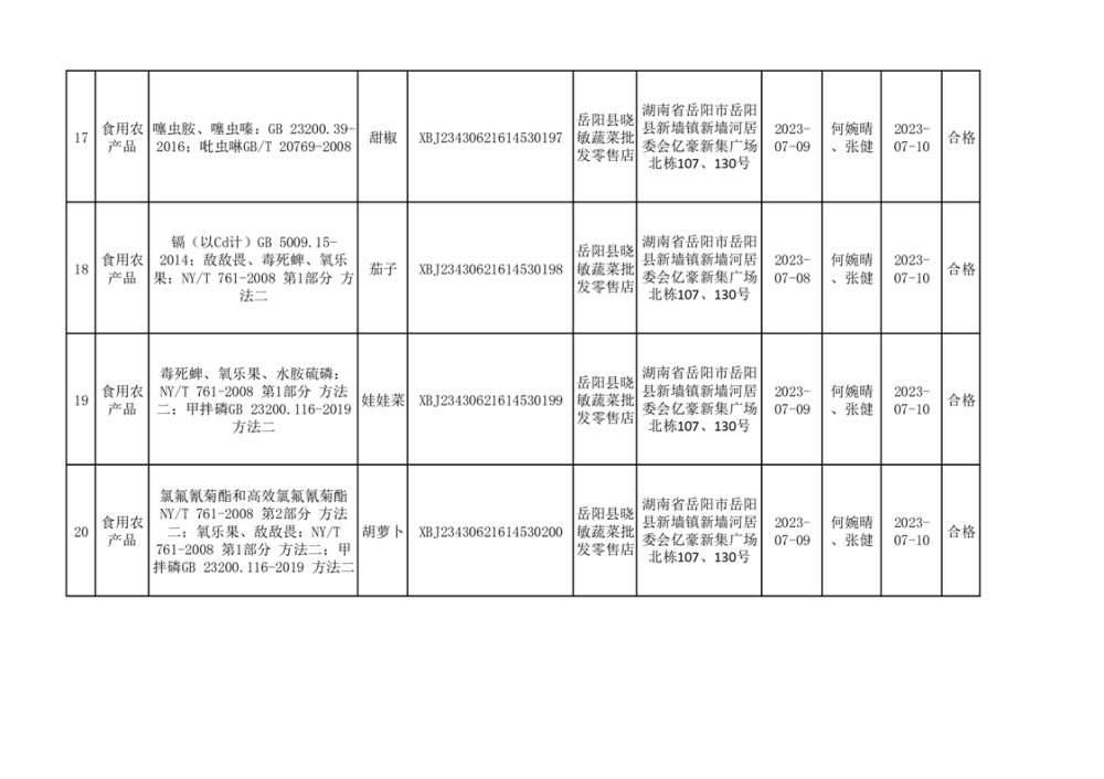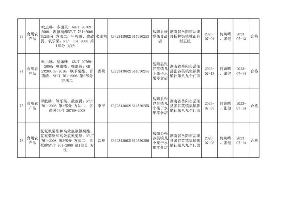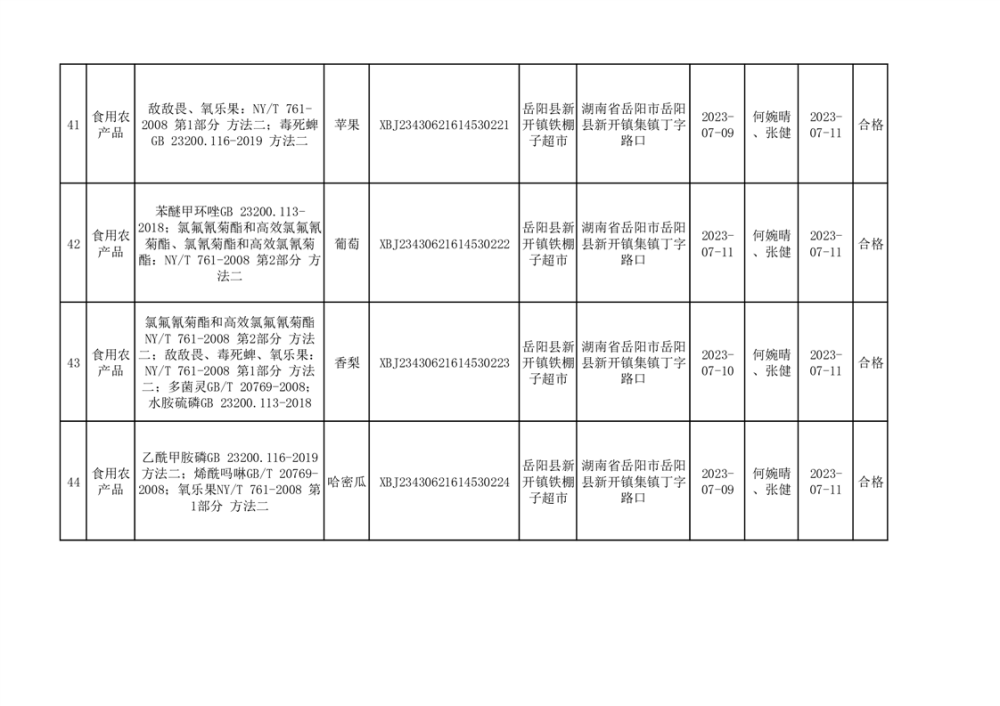 食用農產品合格產品抽檢信息公示(179批次)