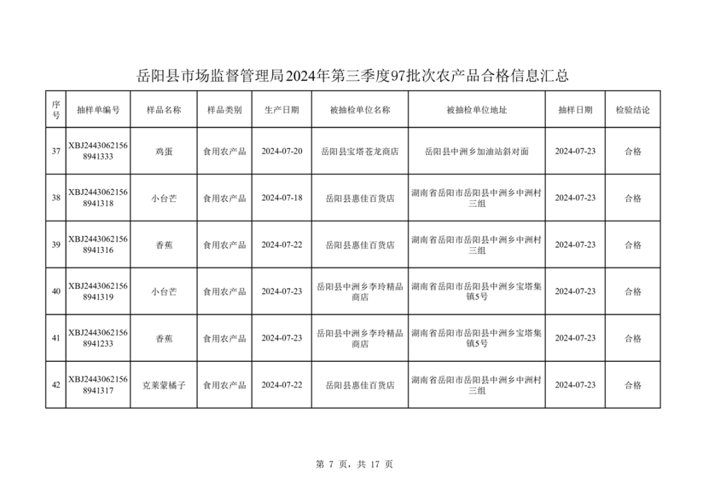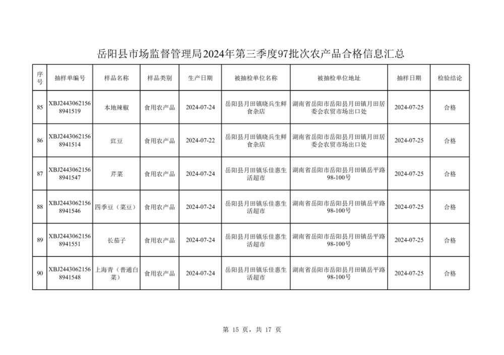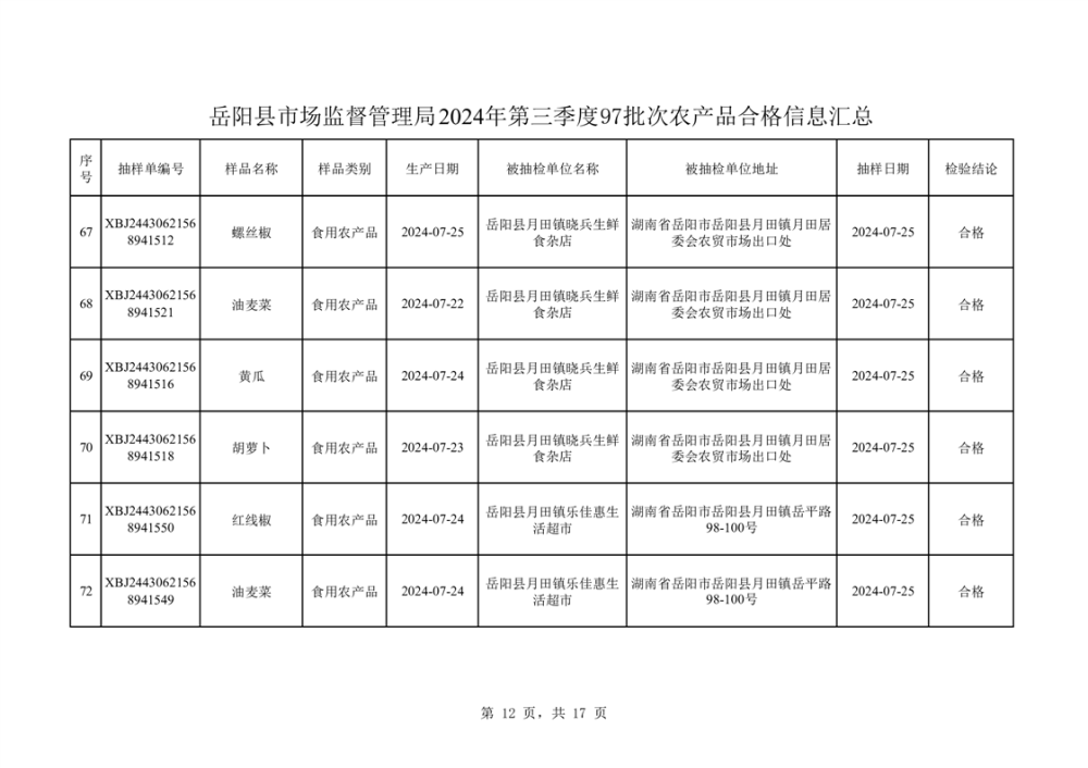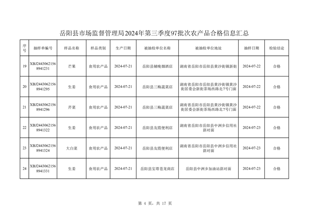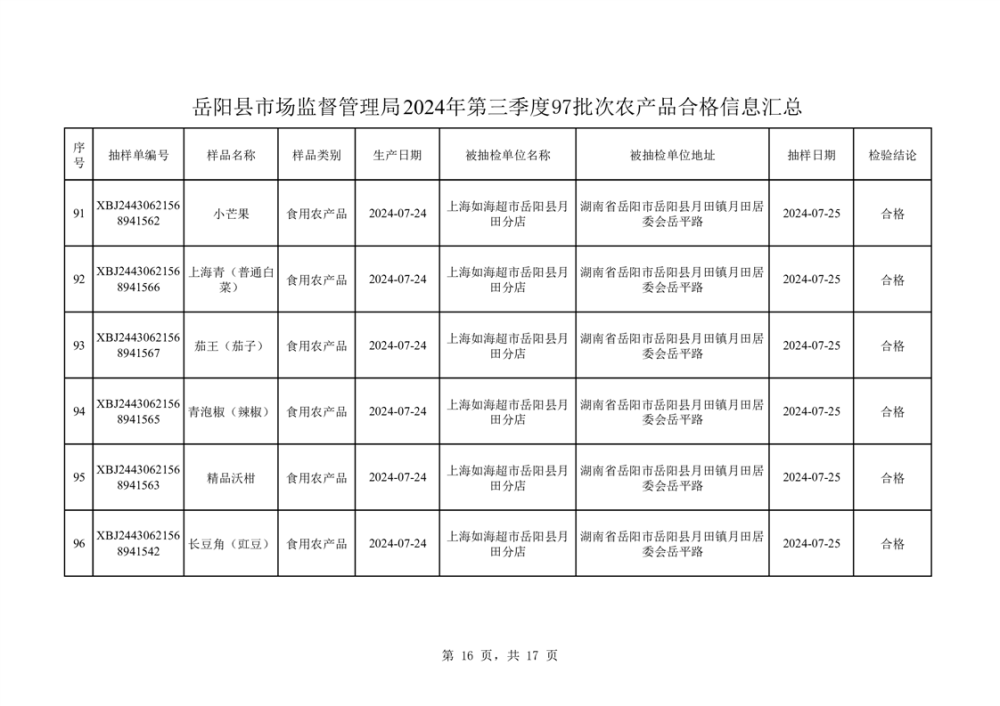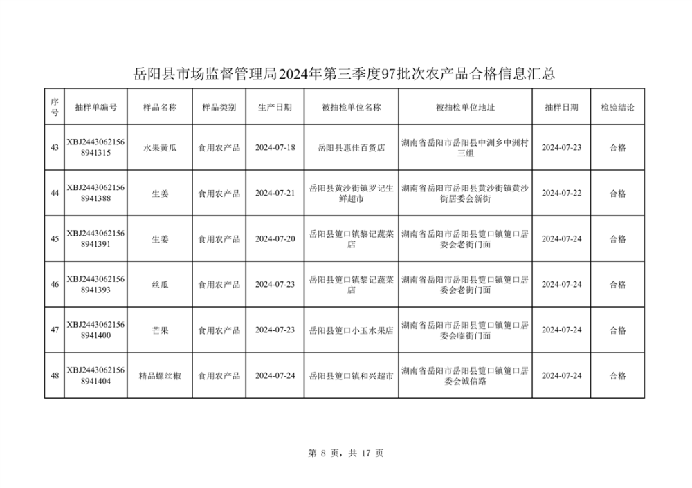 2024年8月份食品抽檢數據公示(97批次)