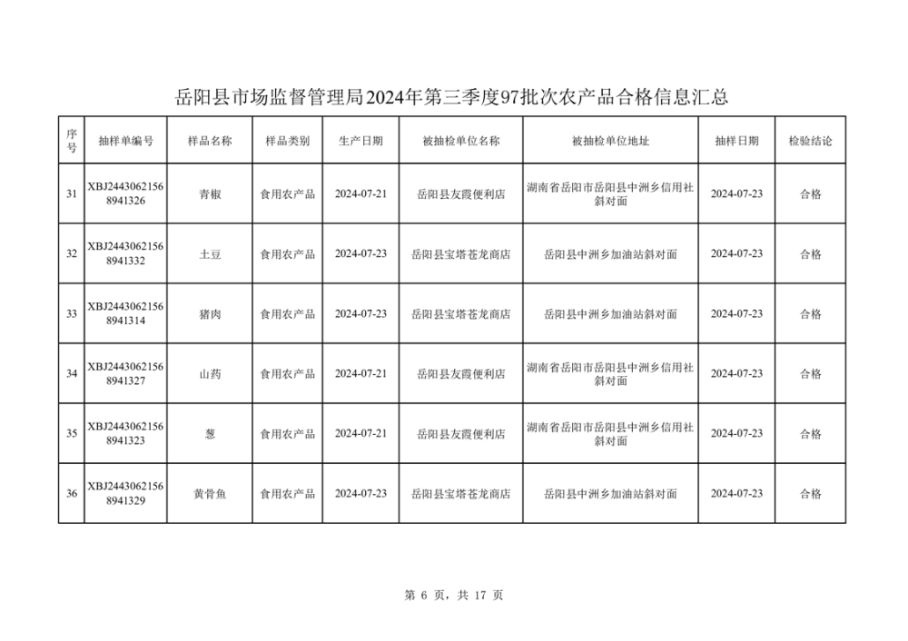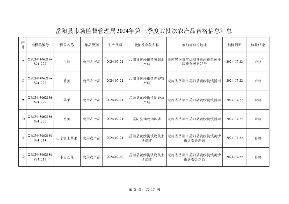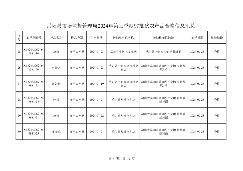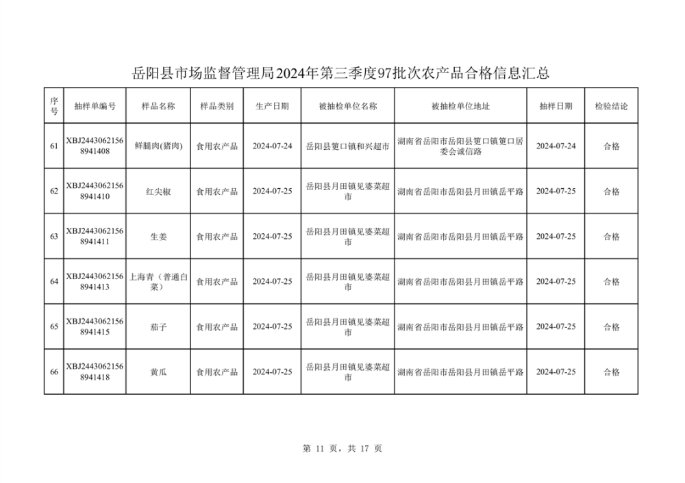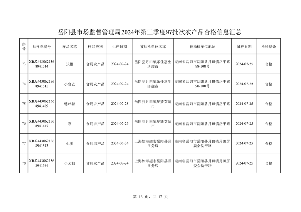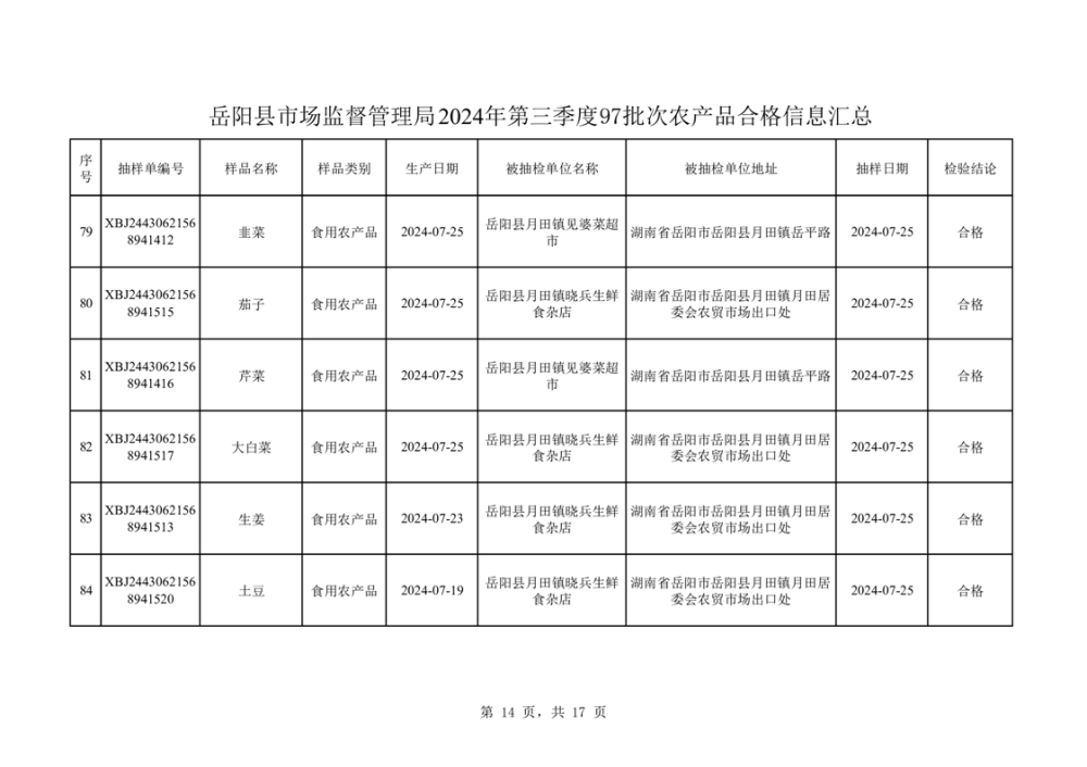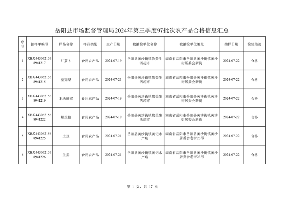 2024年8月份食品抽檢數據公示(97批次)