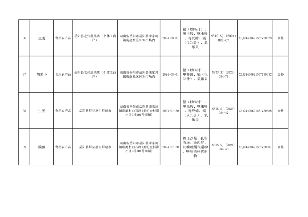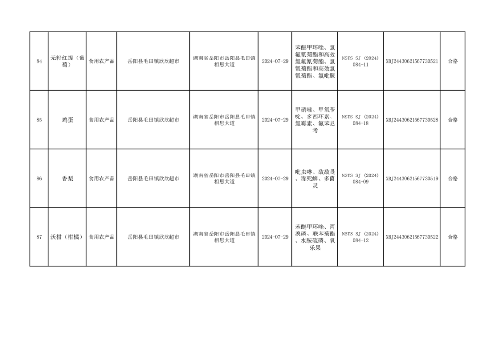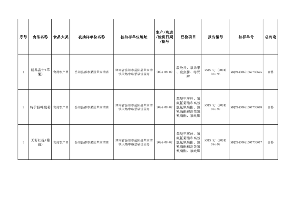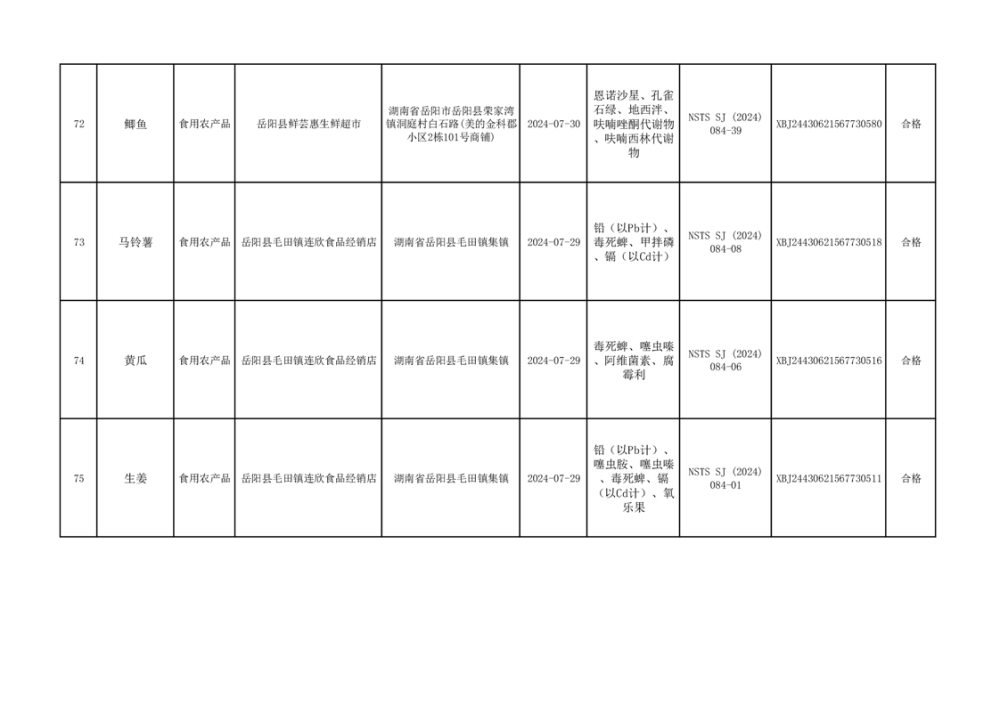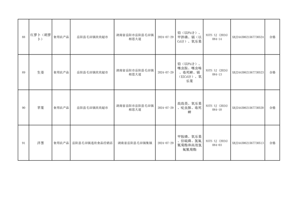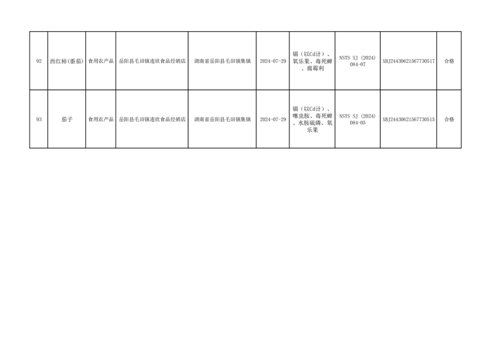 2024年9月份食品抽檢數據公示(93批次)(雲天)