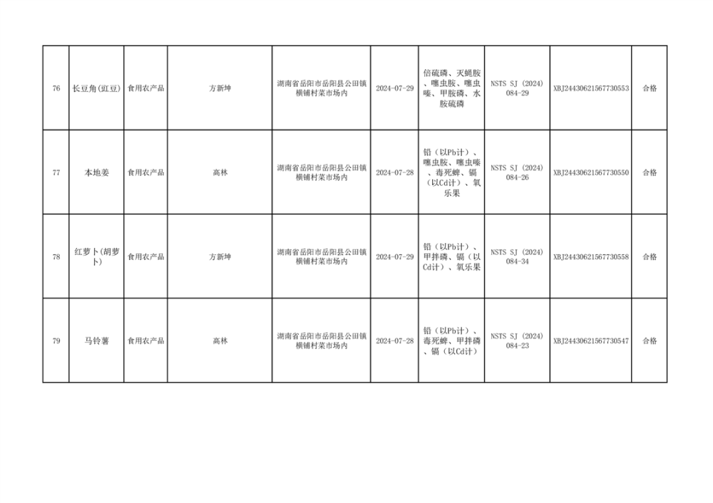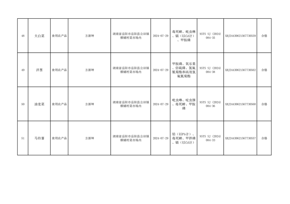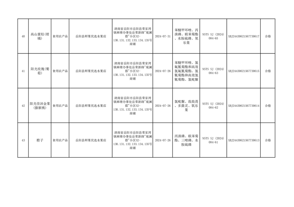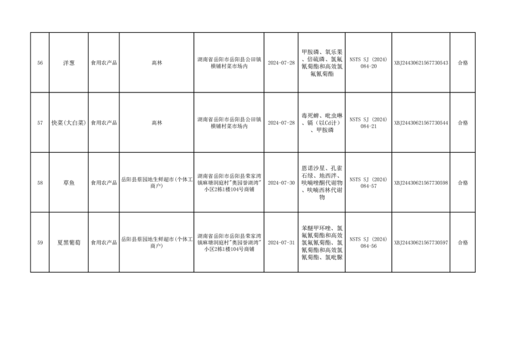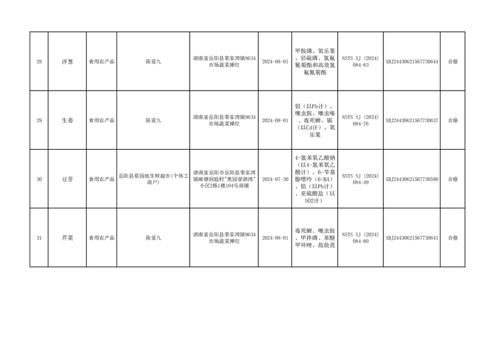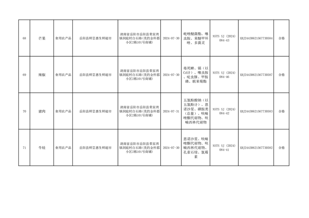 2024年9月份食品抽檢數據公示(93批次)(雲天)