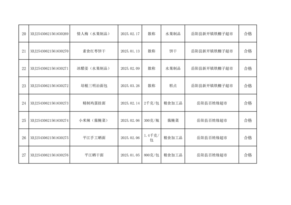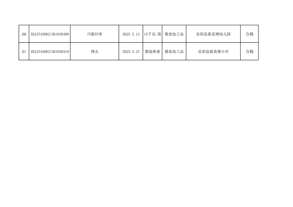 2025年6月27日檢測中心抽檢數據公示(合格61批次)