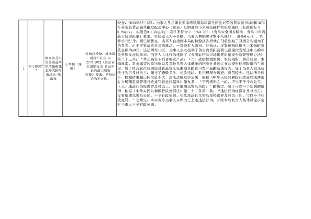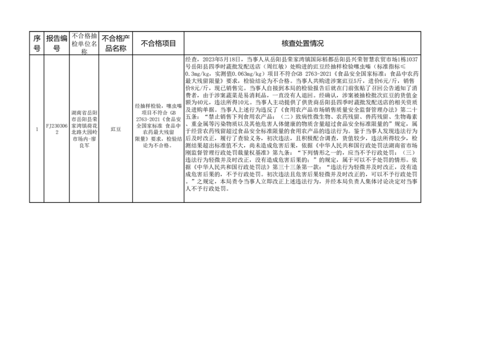 核查處置信息公示(豇豆、小米椒)