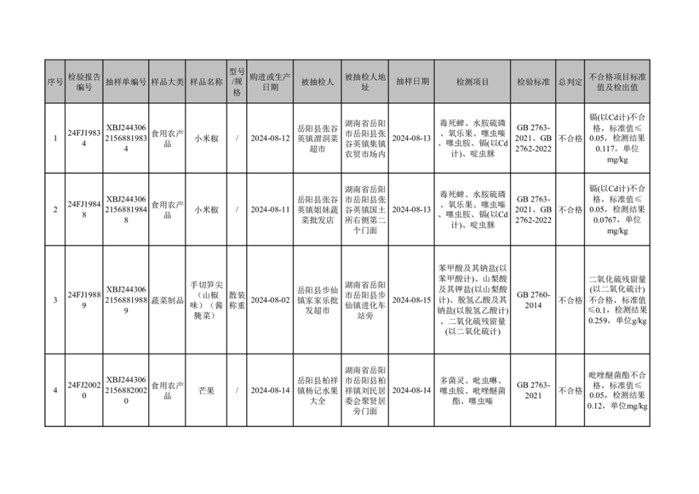 2024年9月18日食品抽檢數據公示(不合格4批次)
