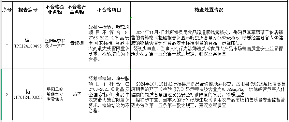 核查處置階段性公示不合格2批次(2025年1月26日)