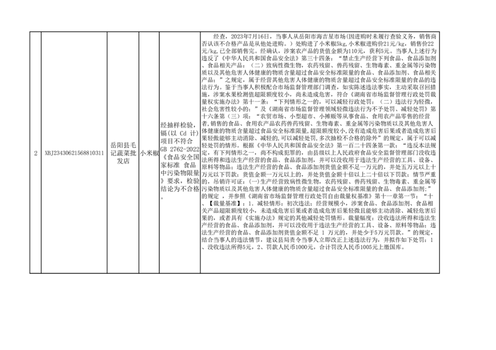 核查處置信息公示(小米椒、韭菜)