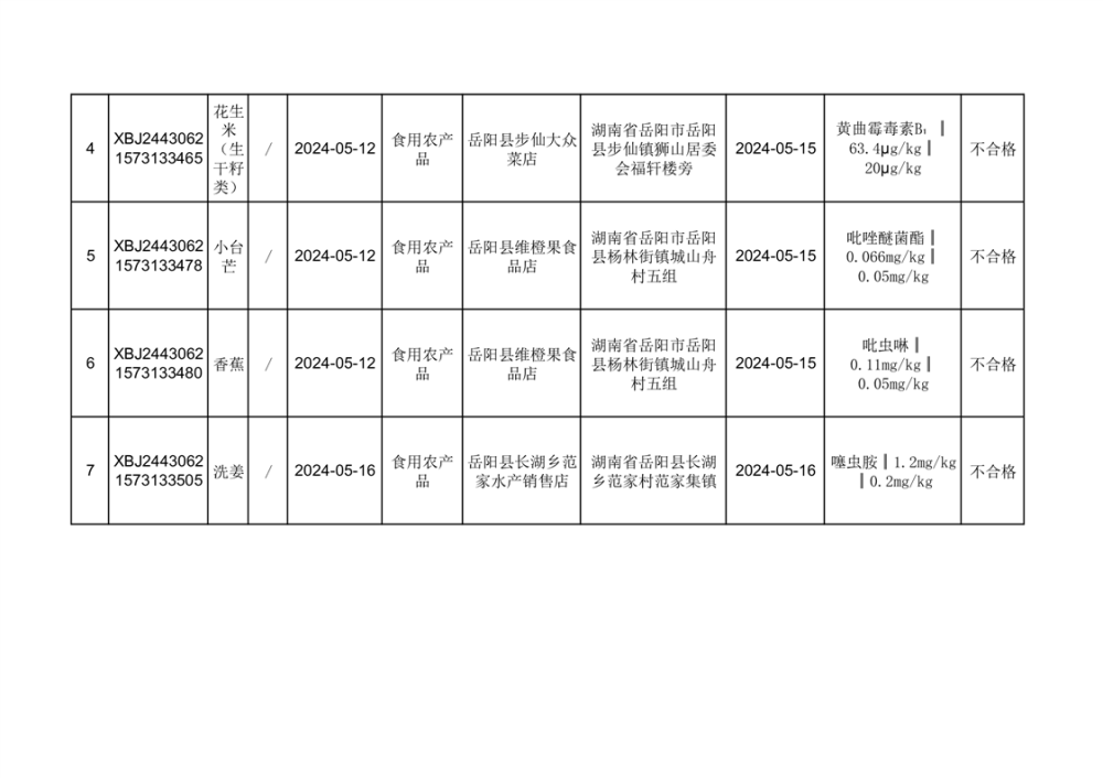 2024年8月份食品抽檢數據公示(不合格7批次)