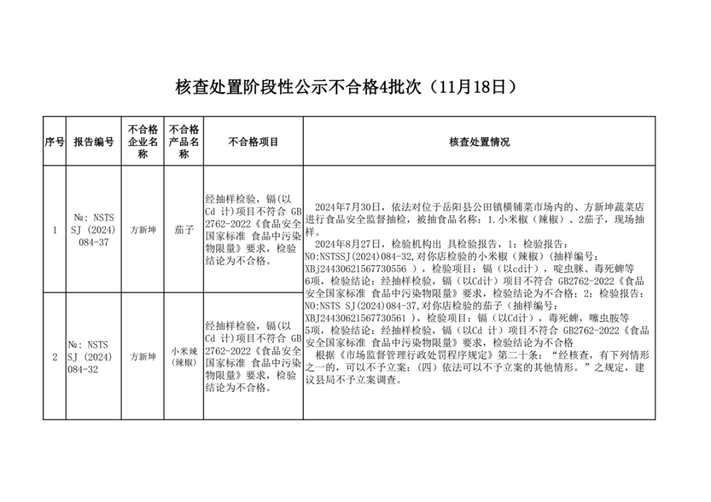核查處置信息公示(2024年11月18日)