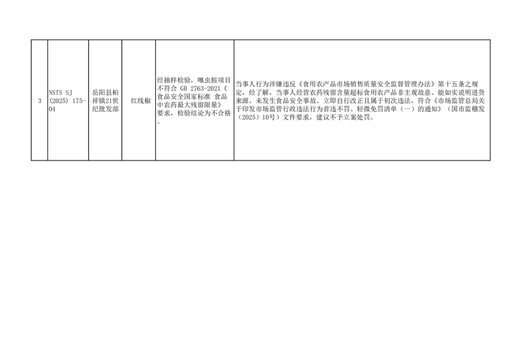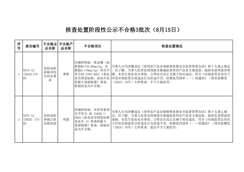 核查處置階段性信息公示不合格3批次(2025年8月15日)