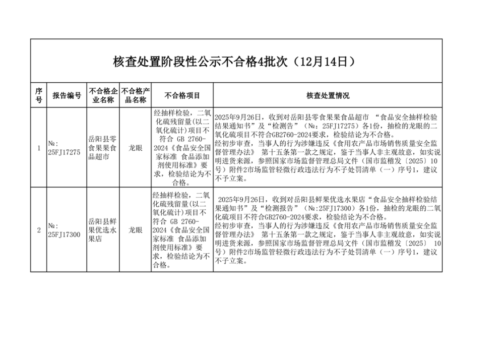 核查處置階段性信息公示(2025年12月14日)