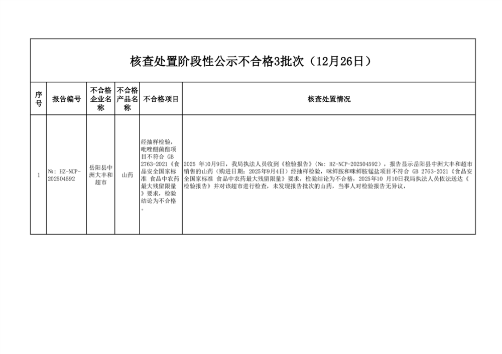 核查處置階段性信息公示(2025年12月26日)