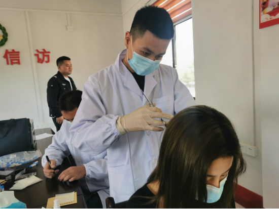 當日上午,各村檢測對象均由駐村輔警帶到現場,禁毒專幹對其身份進行登記核實,專業人員對其進行取發檢測,並由派出所幹警進行現場監督,檢測結果由被檢測人一一簽字確認,確保檢測過程和結果的真實有效。據禁毒專幹介紹,此次共有34名對象進行了毛發檢測,且其中有1名檢測冰毒指標呈陽性的情況,下一步,將對檢測呈陽性的人員進行複檢和談話,對確有吸毒情況的人員,將依法依規做好打擊處理。
