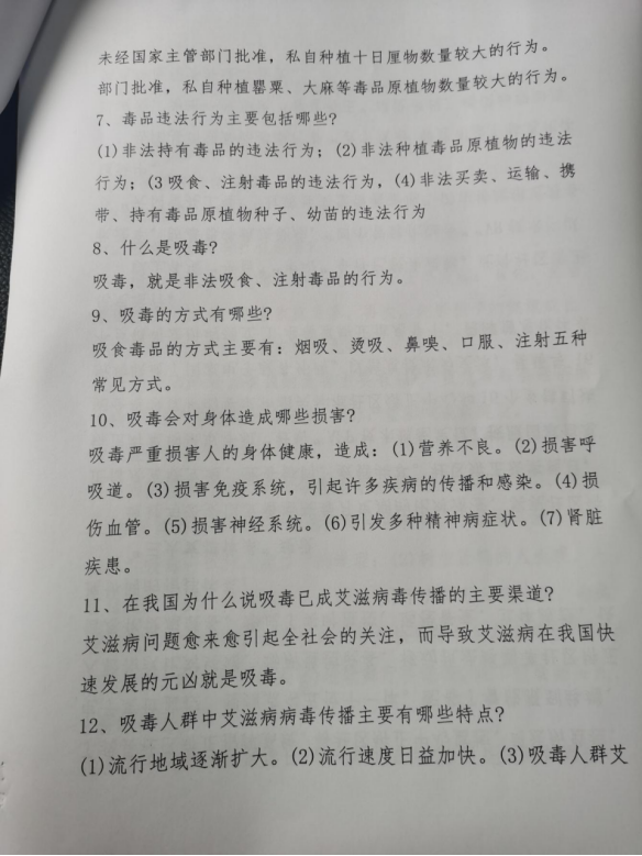 學習中圍繞相關禁毒常識,並要求法宣股把禁毒法規納入普法宣傳的重點,特別是中學生的宣傳十分重要。要求大家增強禁毒意識,我局要高度配合縣禁毒辦做好禁毒工作,發揮部門職能作用,提高禁毒工作的針對性和時效性。同時要求全局幹部職工及家屬加強禁毒知識學習,提高大家對毒品的危害性的認識,提高自身防毒拒毒意識,積極主動參與打擊毒品行動,維護人民生命財產安全。