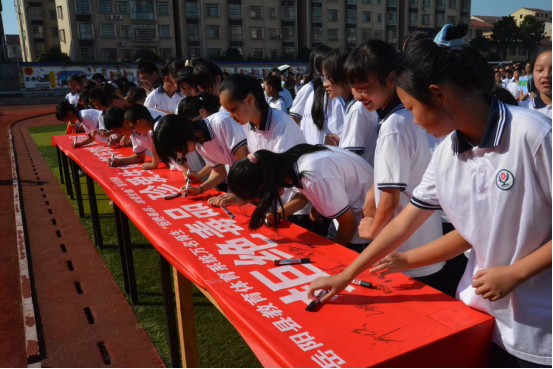 9月23日,嶽陽縣“拒絕毒品、珍愛生命”萬名師生禁毒宣誓簽名活動在縣八中操場上舉行,副縣長候選人、縣公安局黨組書記、政委陳遇春,縣禁毒辦、縣禁毒協會相關負責人,縣教體局全體班子成員,城關地區校長及縣八中全體師生參加。全縣其他學校在分會場同步開展相關活動。