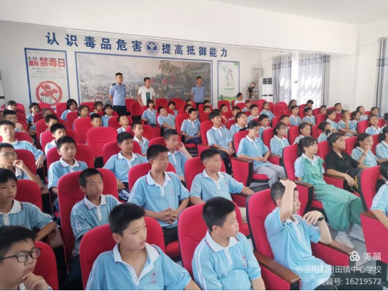 參觀完後,在學校禮堂舉辦了毒品預防宣傳教育大會。會上,月田鎮黨委書記付海苗介紹了近年來月田鎮黨委政府在打造無毒鄉鎮方麵的積極作為,縣教體局領導高作榮對青少年的健康成長提出殷切期盼。隨後,月田鎮派出所教導員陳書高同誌結合自己在抓捕、處置涉毒人員、案件的親身經曆,就毒品對個人、家庭、社會的危害、如何防範毒品、周圍人在吸食毒品关键词2應該怎麽做等方麵進行了集中授課。會後,在學校禁毒宣教室,通過播放禁毒短片的方式,進一步加深同學們對毒品危害的認識,告誡全體師生:毒品不僅吞噬巨額財富,還嚴重摧殘生命健康,助長暴力和犯罪,全體師生要遠離毒品,共同營造健康、和諧的校園氛圍。