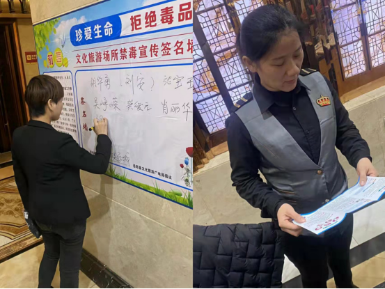活動中,縣文旅廣電局幹部職工和娛樂服務場所禁毒分會誌願30多人,分成5個小組,深入全縣各娛樂場所、網吧、星級賓館等重點文旅場所開展禁毒宣傳。活動現場,誌願者張貼禁毒宣傳海報100多張,發放禁毒宣傳折頁300多份;組織文旅場所經營業主、從業人員、消費者開展禁毒簽名承諾活動並填寫禁毒調查問卷300多份,廣泛宣傳毒品的危害和禁毒工作的重要性。