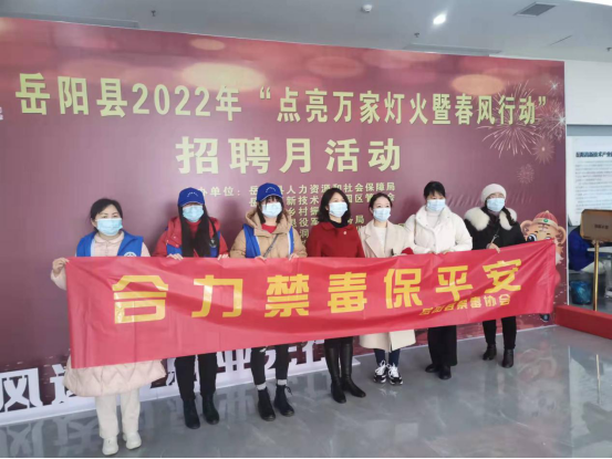 為全力做好禁毒宣傳工作,進一步增強全民禁毒意識,普及毒品知識,傳播禁毒理念、營造濃厚的禁毒宣傳氛圍。2月14日,嶽陽縣禁毒辦、縣禁毒協會聯合榮家灣鎮禁毒分會利用嶽陽縣2022年“點亮萬家燈火暨春風行動”招聘月活動,開展禁毒宣傳活動。