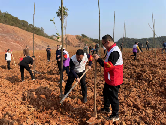 到達新開鎮朱砂橋村采石場後,大家搬運樹苗、扶正填土、踩實坑位、分工協作、密切配合、熱情高漲。經過一各上午的奮戰,綠色樹苗筆直挺立,在這乍暖還寒之時,黨員們齊心協力為新開鎮又增添了一抹生機勃勃的綠色。