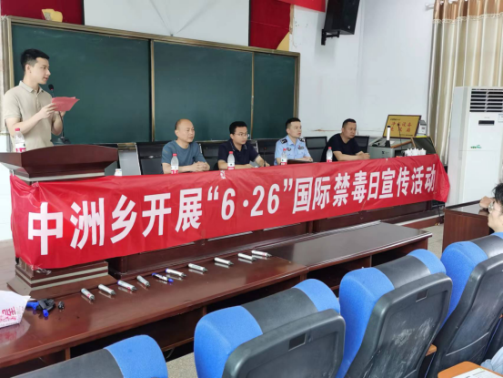 在第35個國際禁毒日來臨之際,為全麵深化學校禁毒工作,進一步提高全鄉師生的防毒意識,保障全體師生的生命健康,維護社會穩定。中洲鄉禁毒辦聯合中洲鄉派出所、中洲鄉司法所、中洲鄉中心學校共同主辦以“健康人生,綠色無毒”為主題的禁毒教育活動。中洲鄉人民政府李福緣鄉長、中洲派出所陶夕榮所長、中心學校胡焱軍校長,中心學校常務副校長萬雙,以及中洲鄉各單位分管禁毒工作的負責人參加了此次活動。