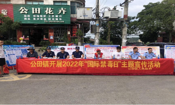 在公田集鎮鐵山大道和中心小學,通過擺放宣傳台、掛橫幅的方式吸引居民與學生,並對居民與學生們進行禁毒宣傳、普及禁毒法律法規、發放禁毒宣傳手冊,對居民與學生們進行禁毒知識問答,激發居民與學生們對禁毒知識的興趣。工作人員向居民與學生講解了毒品的種類特征,吸毒的危害,讓大家正確的認識毒品,樹立健康積極的人生觀和價值觀,同時引導群眾積極參與禁毒宣傳工作,號召周圍的親朋好友一起學習禁毒知識,一起抵禦毒品的侵襲,珍愛生命,遠離毒品。