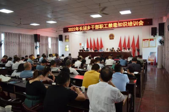 9月26日下午,長湖鄉開展幹部職工禁毒知識培訓會。全鄉黨政班子成員、機關幹部職工、各部門站所成員、各村幹部全部參加。