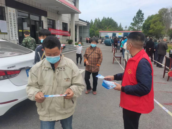 在核酸采樣檢測點出口位置設禁毒宣傳點,居民做完核酸采樣後,在出口處排隊有序向居民發放禁毒宣傳資料,引導群眾要自覺抵製毒品,積極參與全民禁毒。在宣傳禁毒知識的同時提醒大家要戴好口罩、保持好一米間隔距離,注意個人衛生,不要去人員密集的地方。