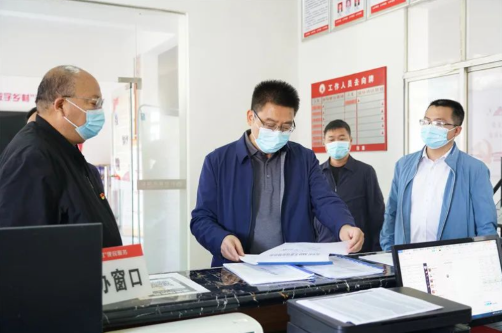 ▲肖湘暉查看筻口鎮西衝村鄉村振興資料台賬。