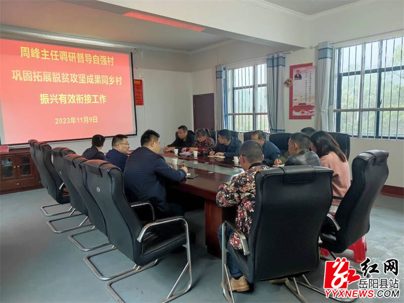 在自強村村部,周峰與村幹部、駐村幹部深入交流,詳細了解鞏固拓展脫貧攻堅成果同鄉村振興有效銜接工作開展情況。他強調,要提高政治站位,強化工作舉措,紮實做好鞏固拓展脫貧攻堅成果同鄉村振興有效銜接工作;要做細基礎工作,完善各類基礎性工作台賬,確保做到收集全麵、分類清楚、內容詳實;要抓實產業振興,全麵鞏固拓展脫貧攻堅成果,因地製宜做強優勢產業,健全完善利益聯結機製,更好帶動群眾增收致富;要加強基層治理,辦好為民實事,不斷提升廣大人民群眾的幸福感、獲得感;要改進工作作風,全麵擰緊責任鏈條,不斷強化鎮、村工作督查考核及結果運用,持續加大投入保障,齊心協力、真抓實幹,全力推動我縣有效銜接工作上新台階、鄉村振興見新成效。