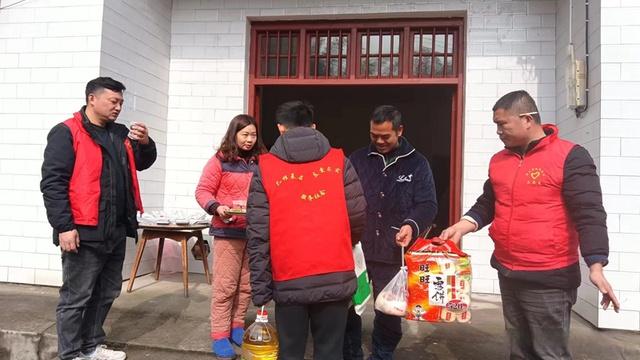 村黨總支書記鄒蘊儀帶領在外鄉友肖仁、陳懇、陳中傑、付銳和黨員誌願者穿梭在鄉間屋場各個樓棟,每到一戶,都親切地拉家常,了解他們的生產生活、外出務工、子女教育、年貨置辦等情況,認真聆聽他們的心聲和意見,同時宣講了黨和政府的惠民政策,並送上大米、油和新春問候,針對獨居的困難群體,認真檢查居住環境,並詳細叮囑安全知識。