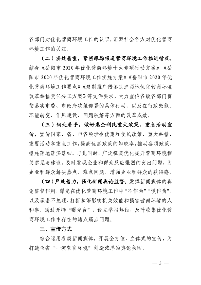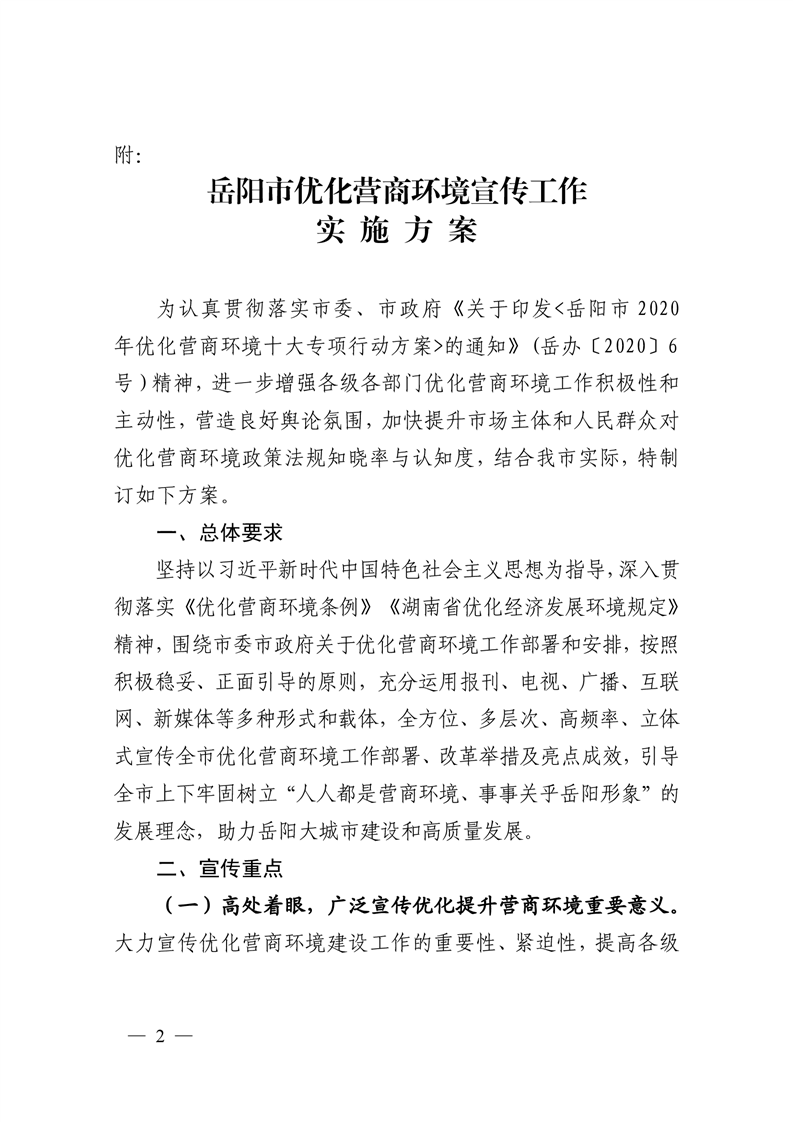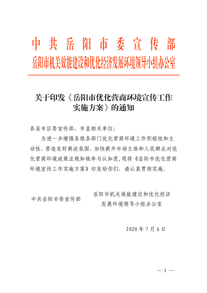 關於印發《嶽陽市優化營商環境宣傳工作實施方案》的通知