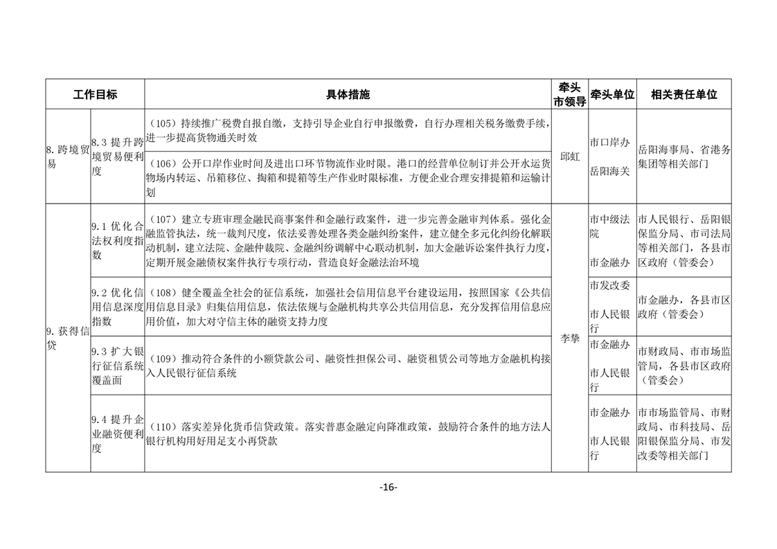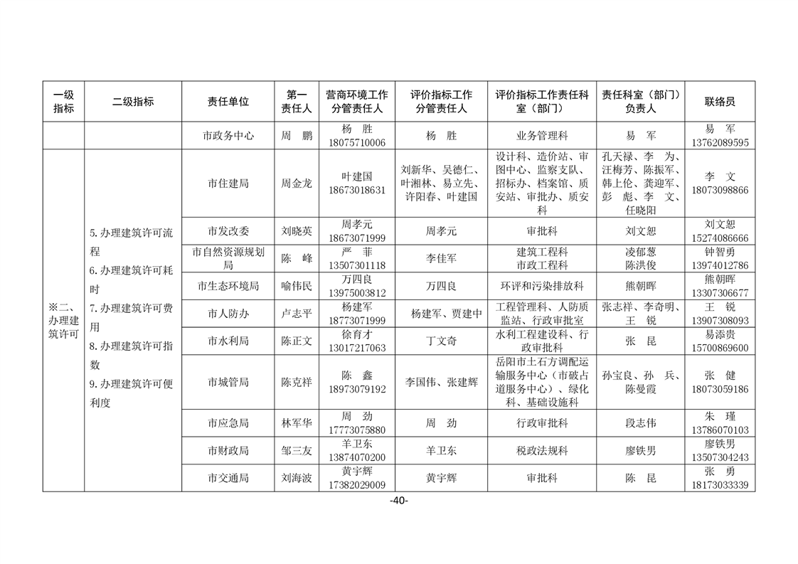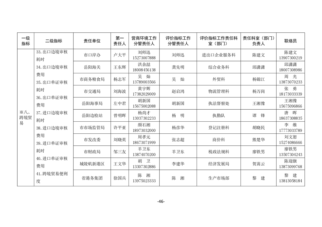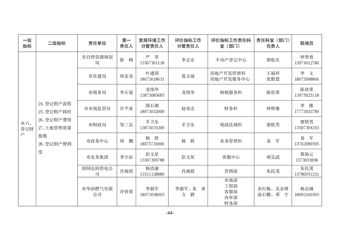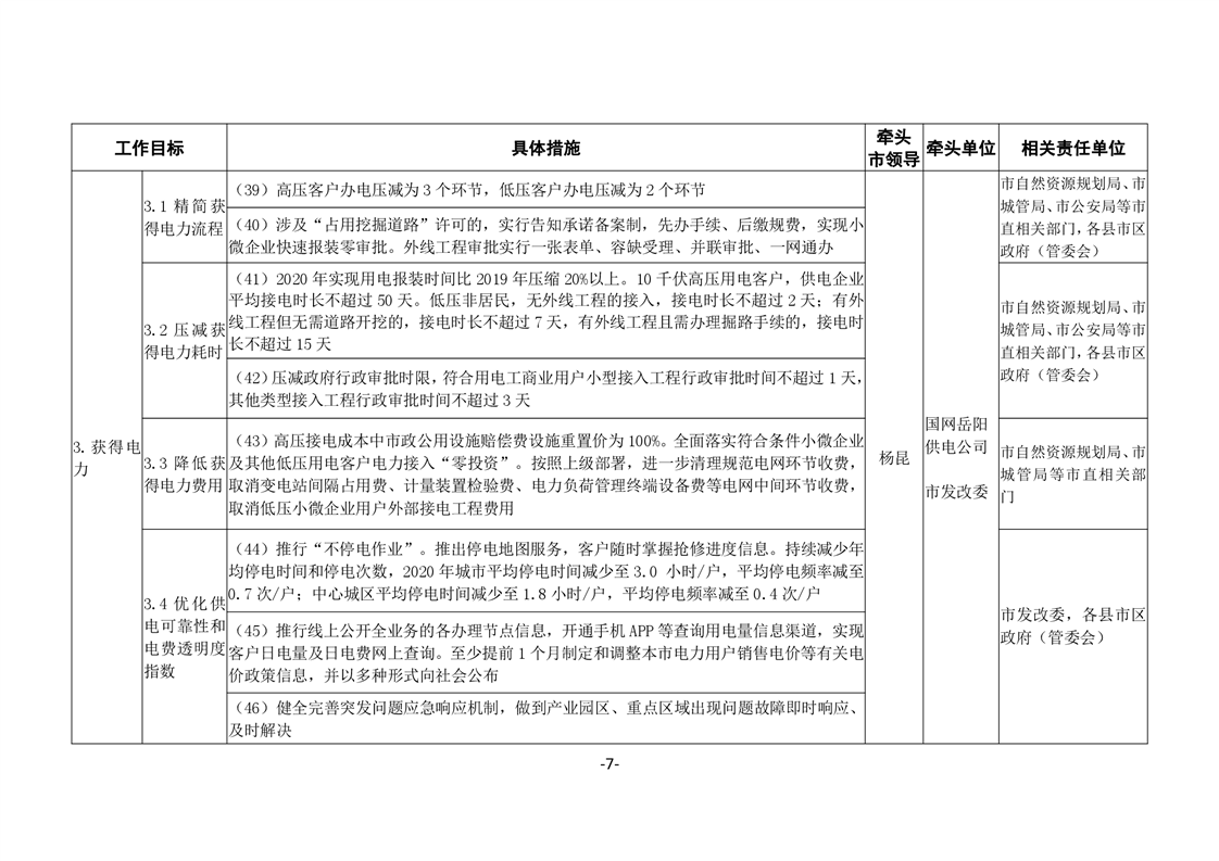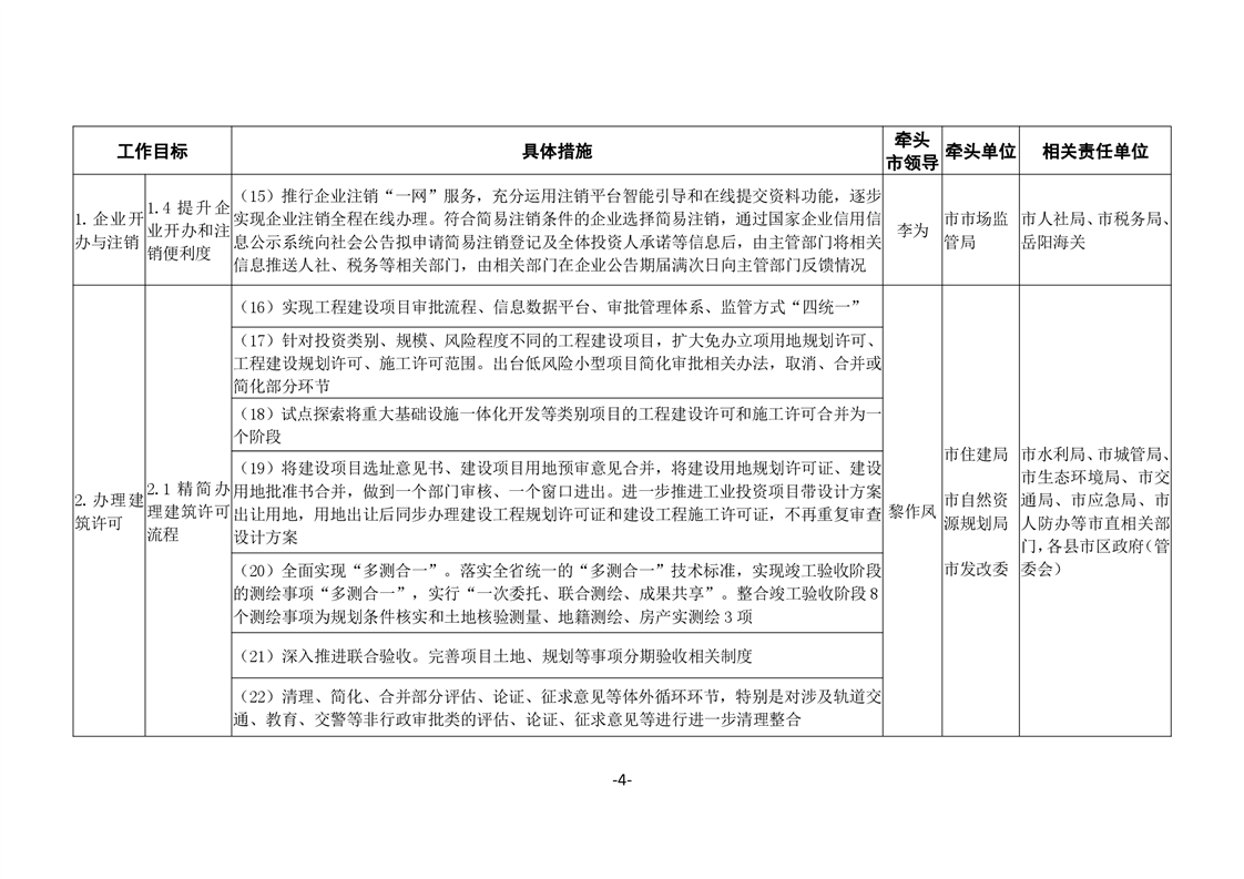 關於印發《嶽陽市進一步優化營商環境任務分解表》《嶽陽市營商環境評價指標責任單位和責任人匯總表》的通知(嶽優發〔2020〕3號)