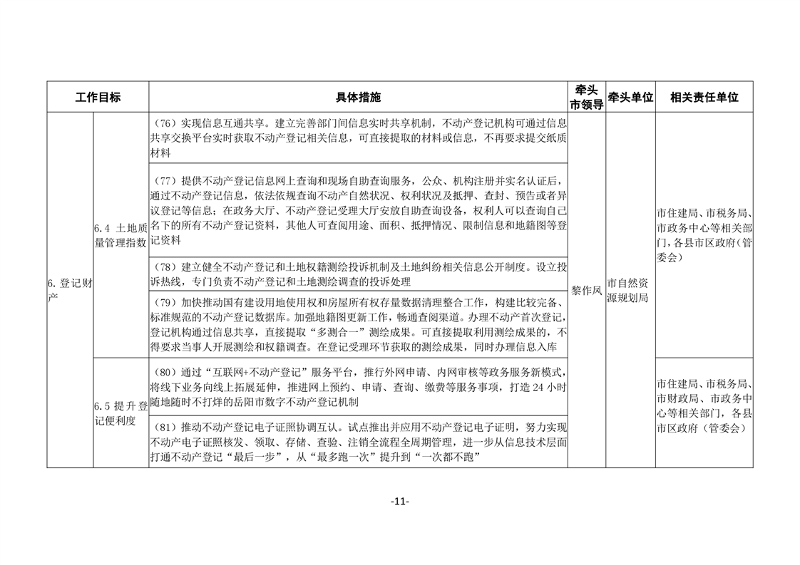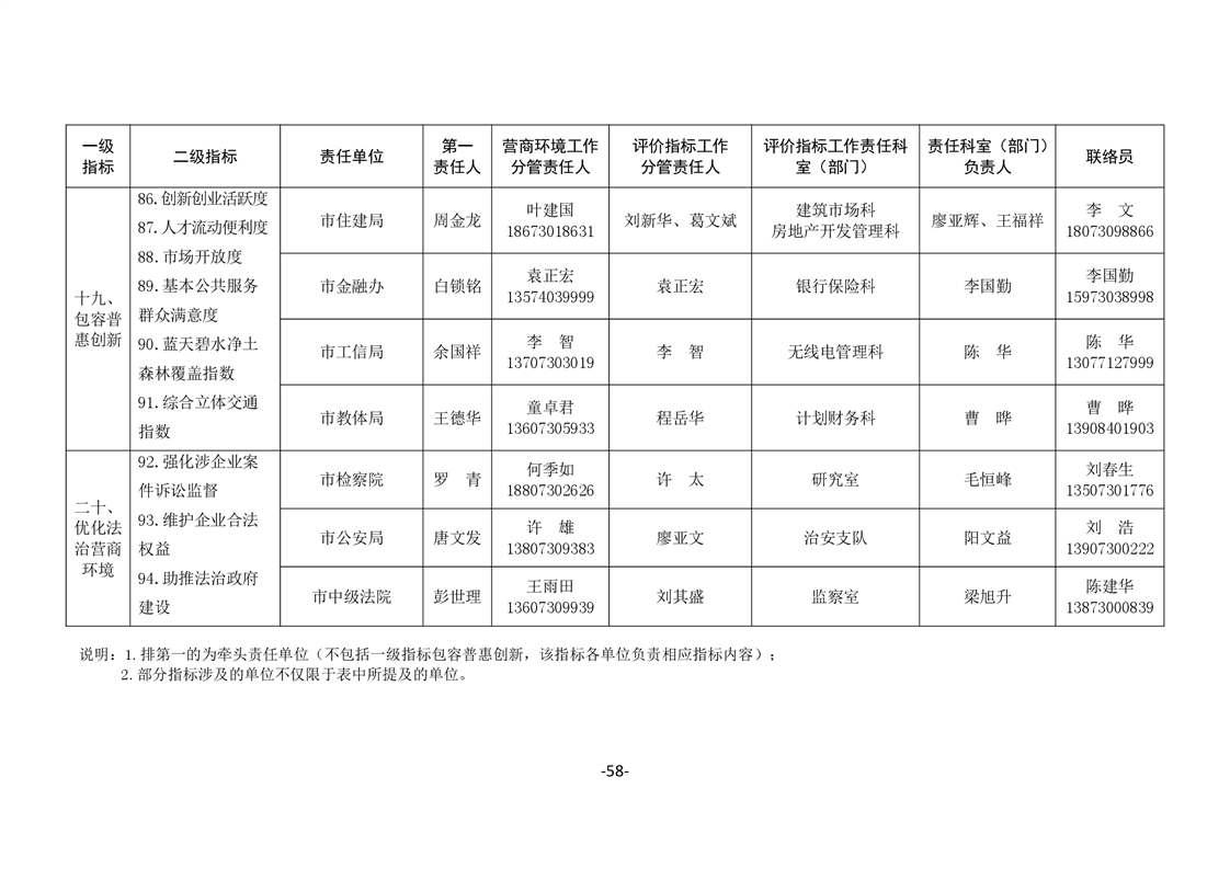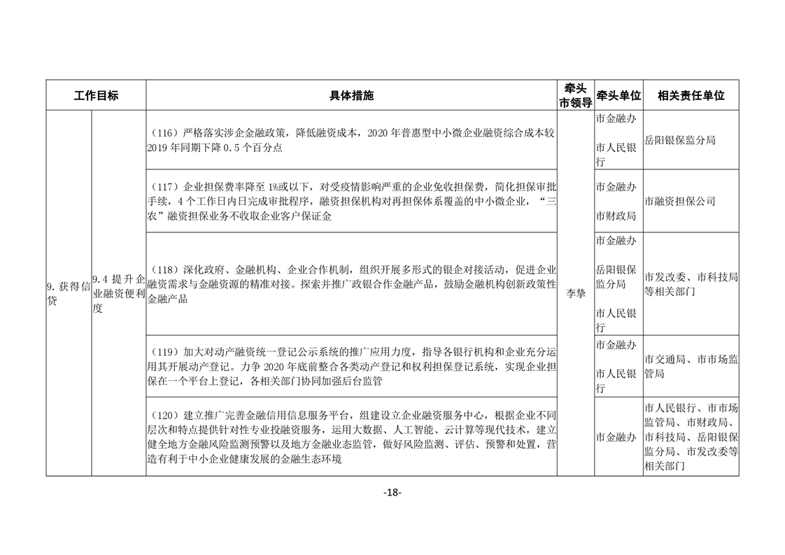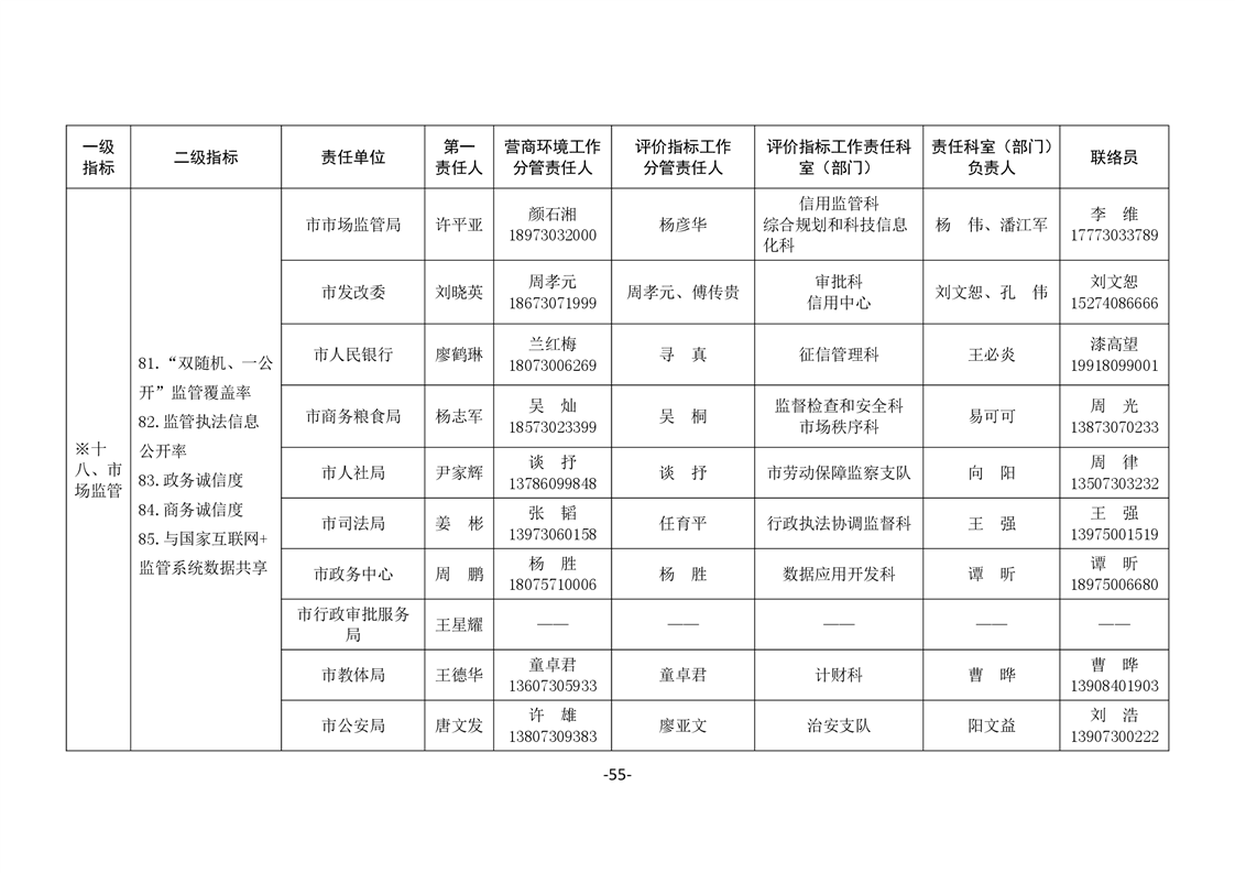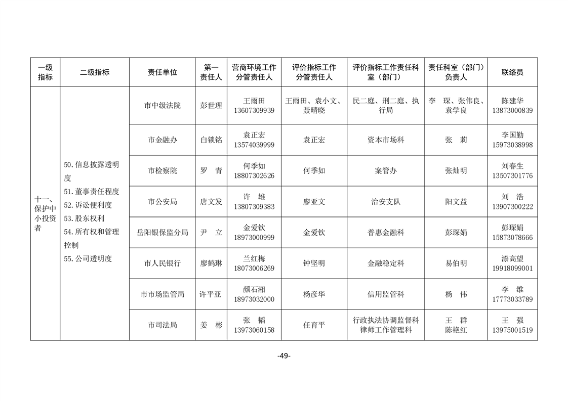 關於印發《嶽陽市進一步優化營商環境任務分解表》《嶽陽市營商環境評價指標責任單位和責任人匯總表》的通知(嶽優發〔2020〕3號)