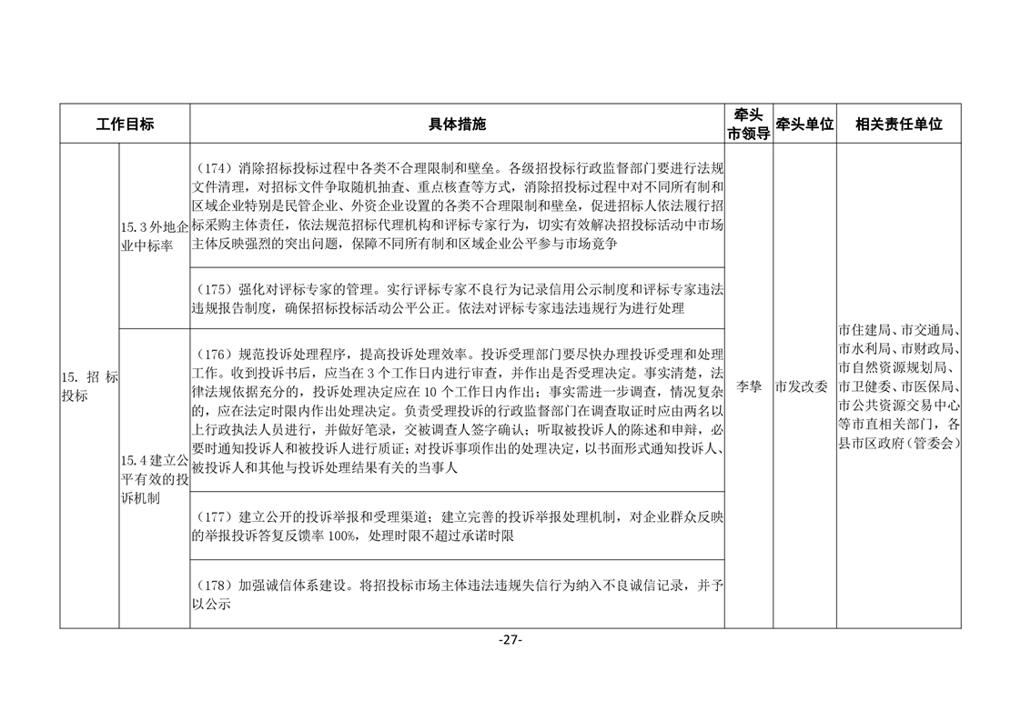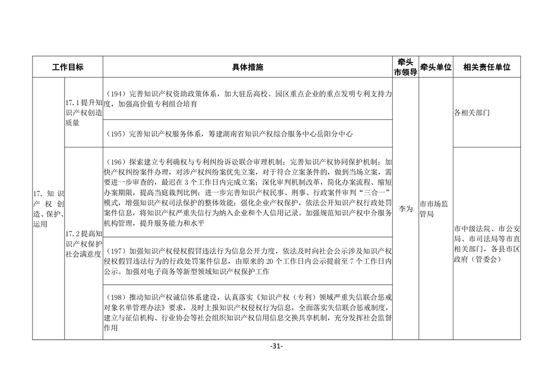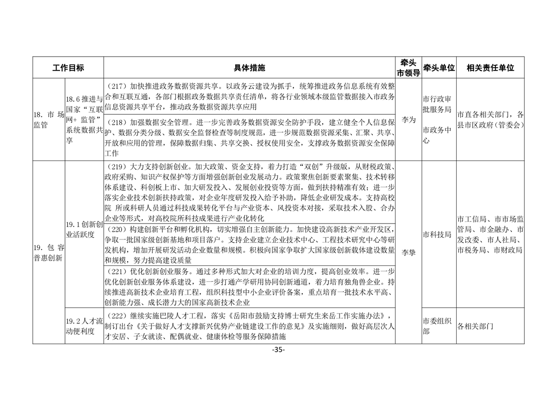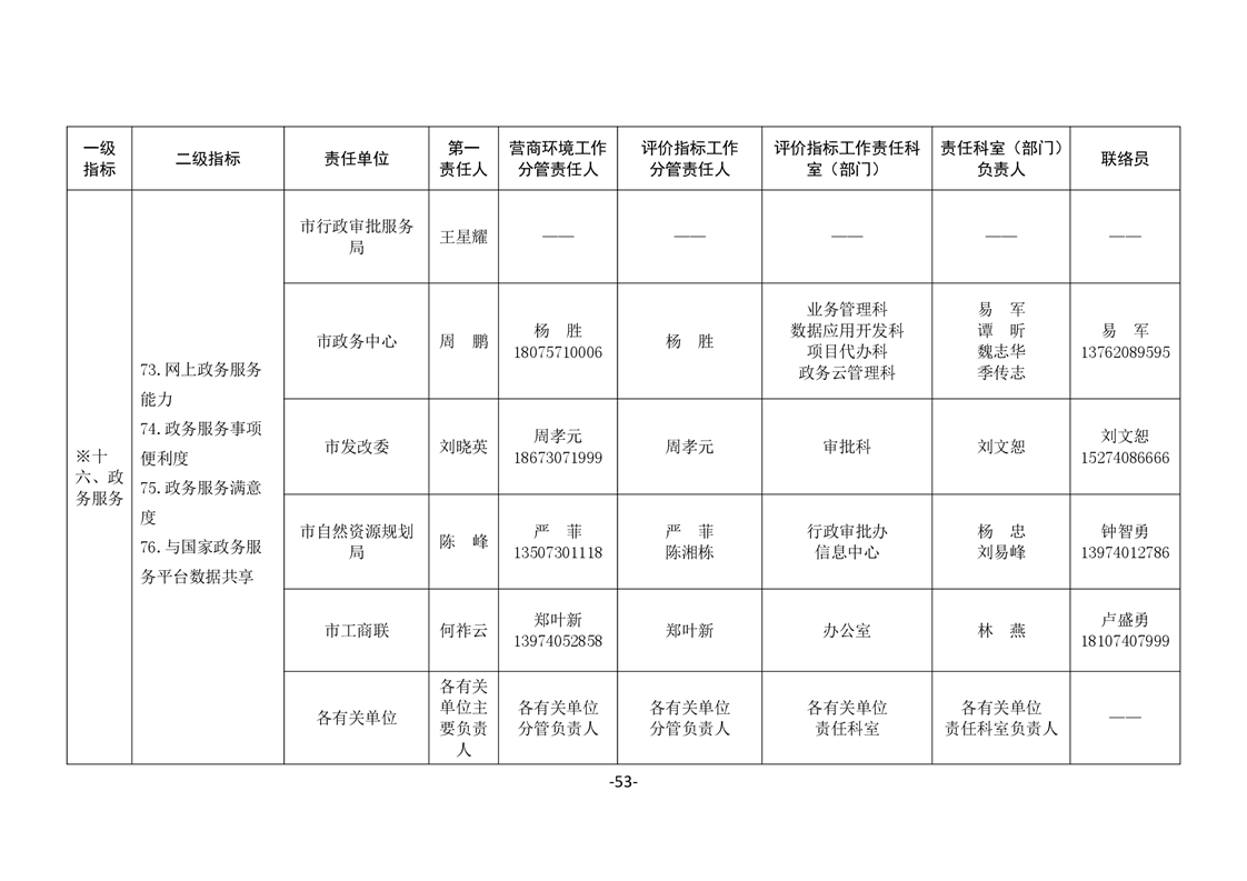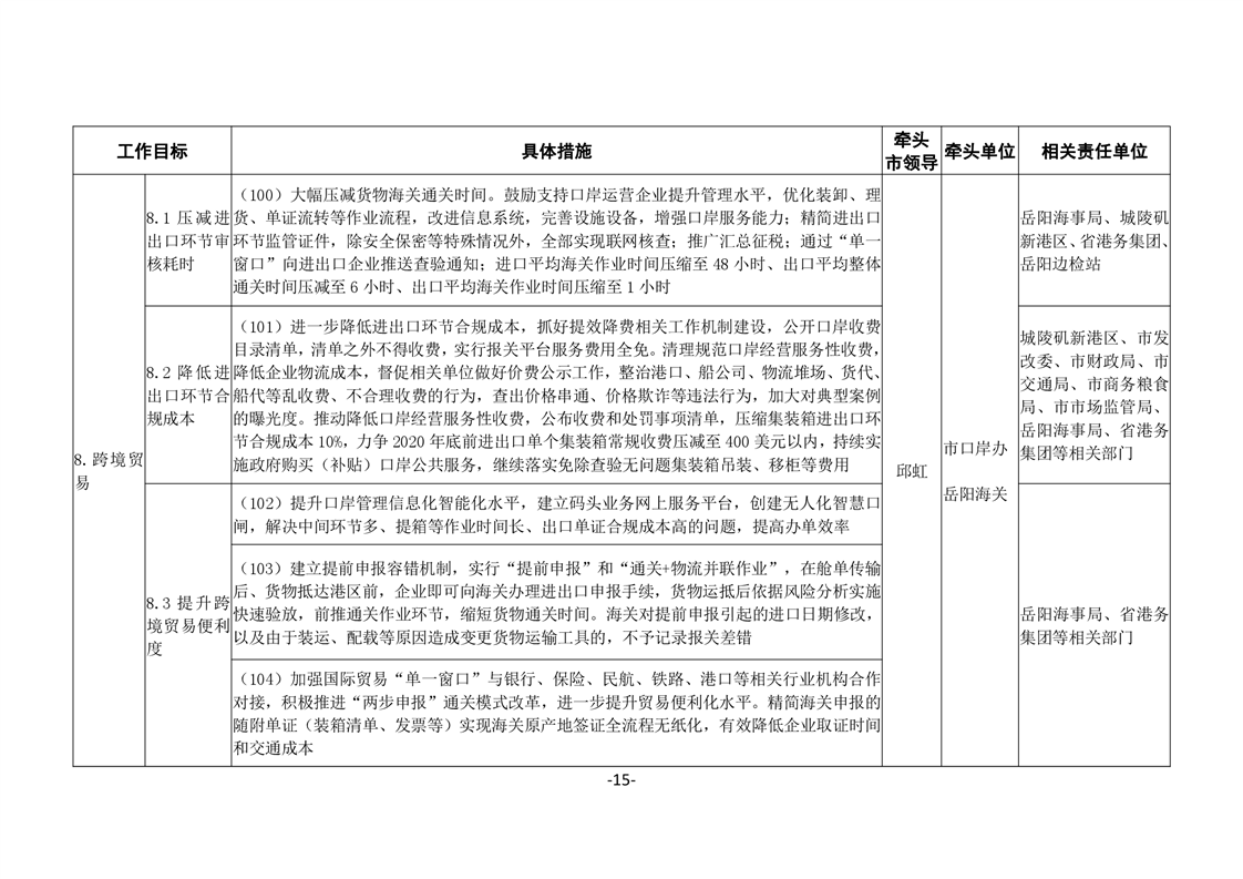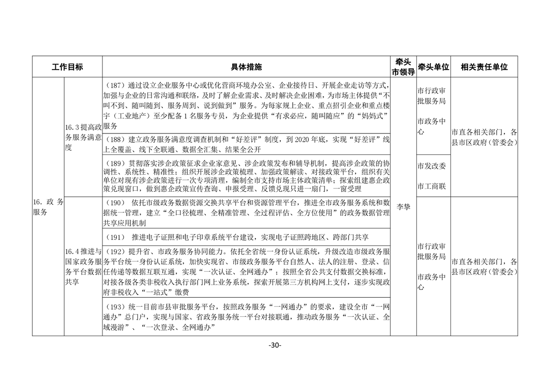 關於印發《嶽陽市進一步優化營商環境任務分解表》《嶽陽市營商環境評價指標責任單位和責任人匯總表》的通知(嶽優發〔2020〕3號)