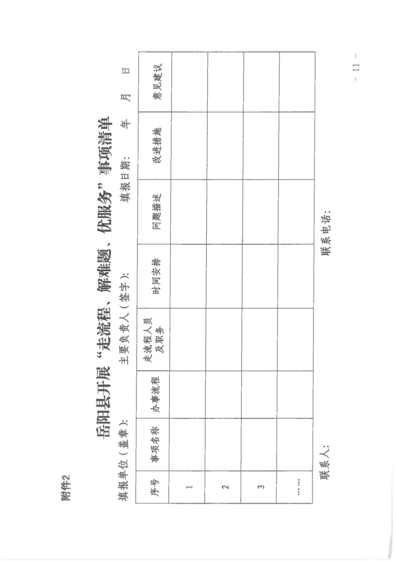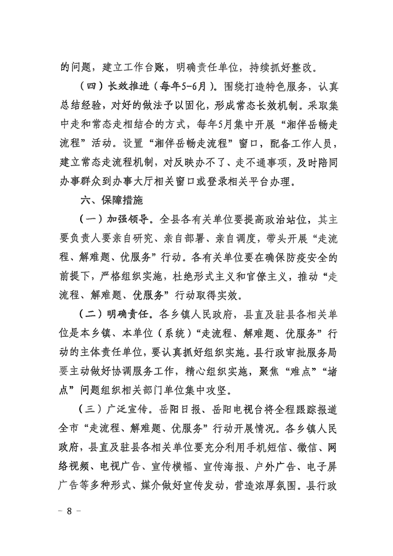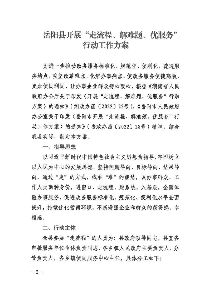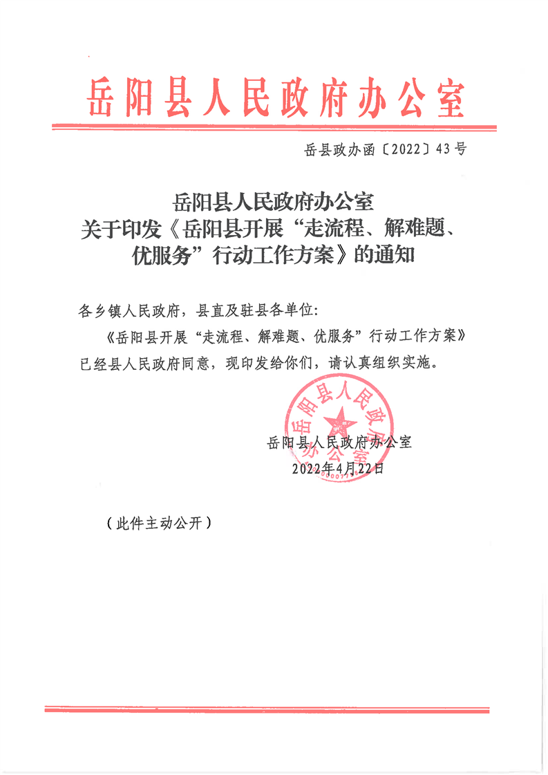 關於印發《嶽陽縣開展“走流程、解難題、優服務”行動工作方案》的通知