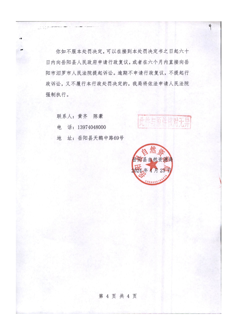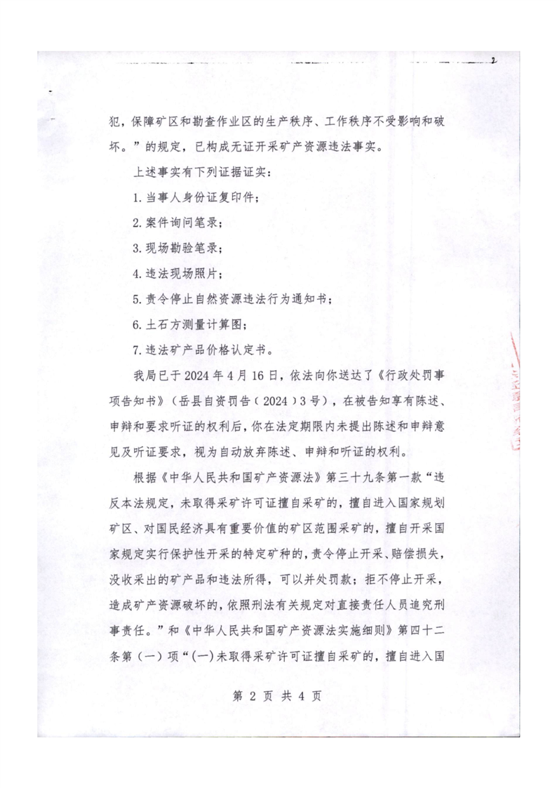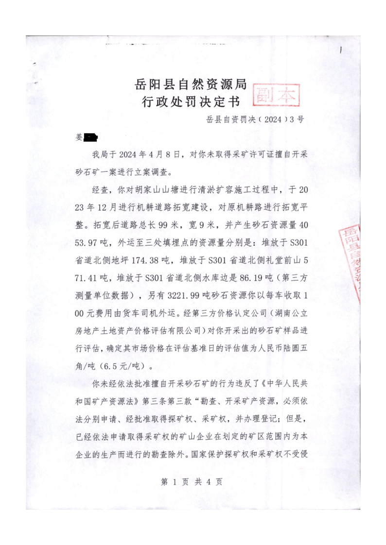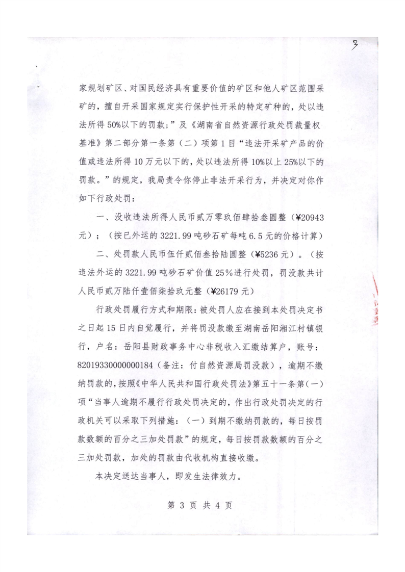 行政處罰決定書 嶽縣自然資罰決(2024)3號