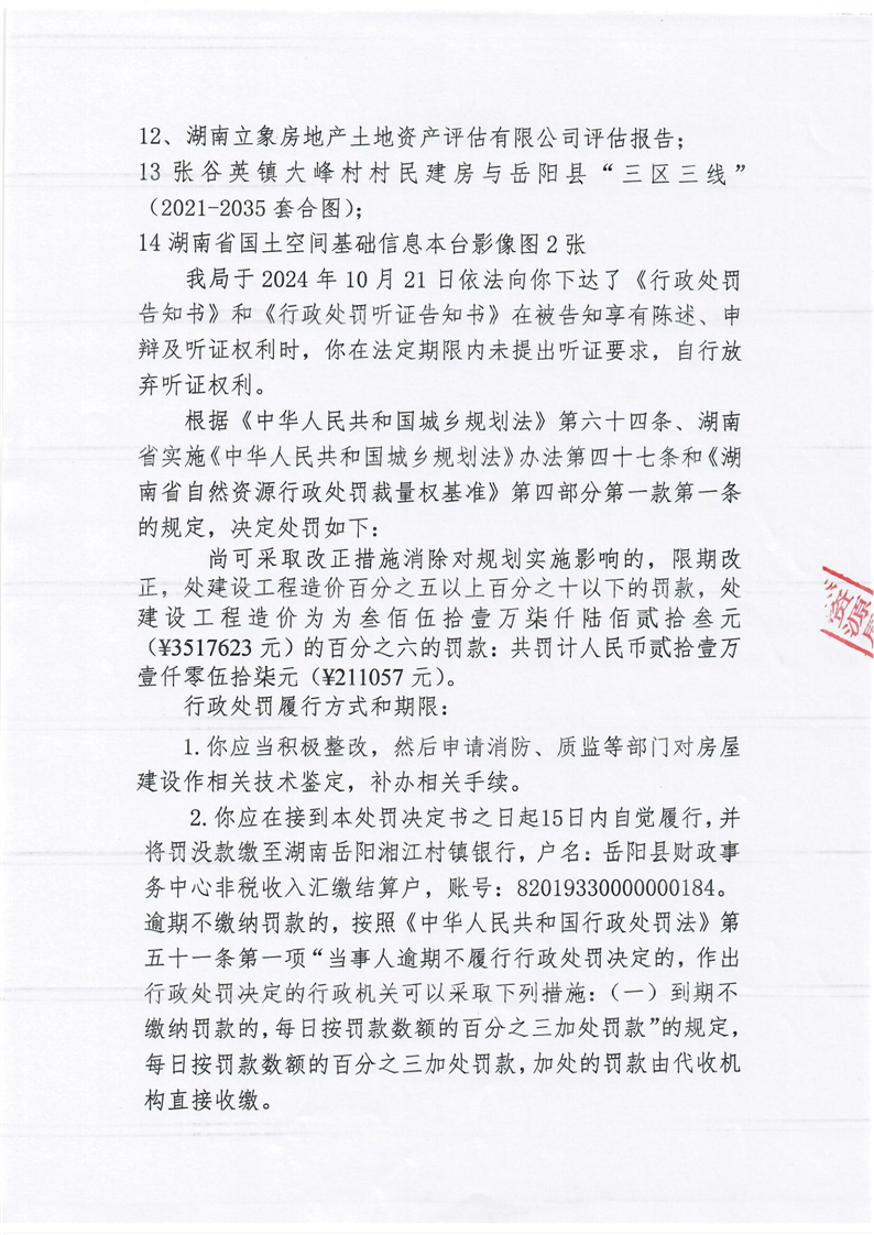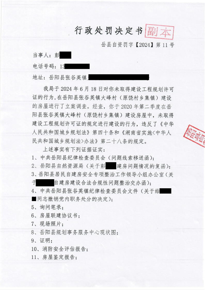 行政處罰決定書 嶽縣自然資罰決〔2024〕第11號