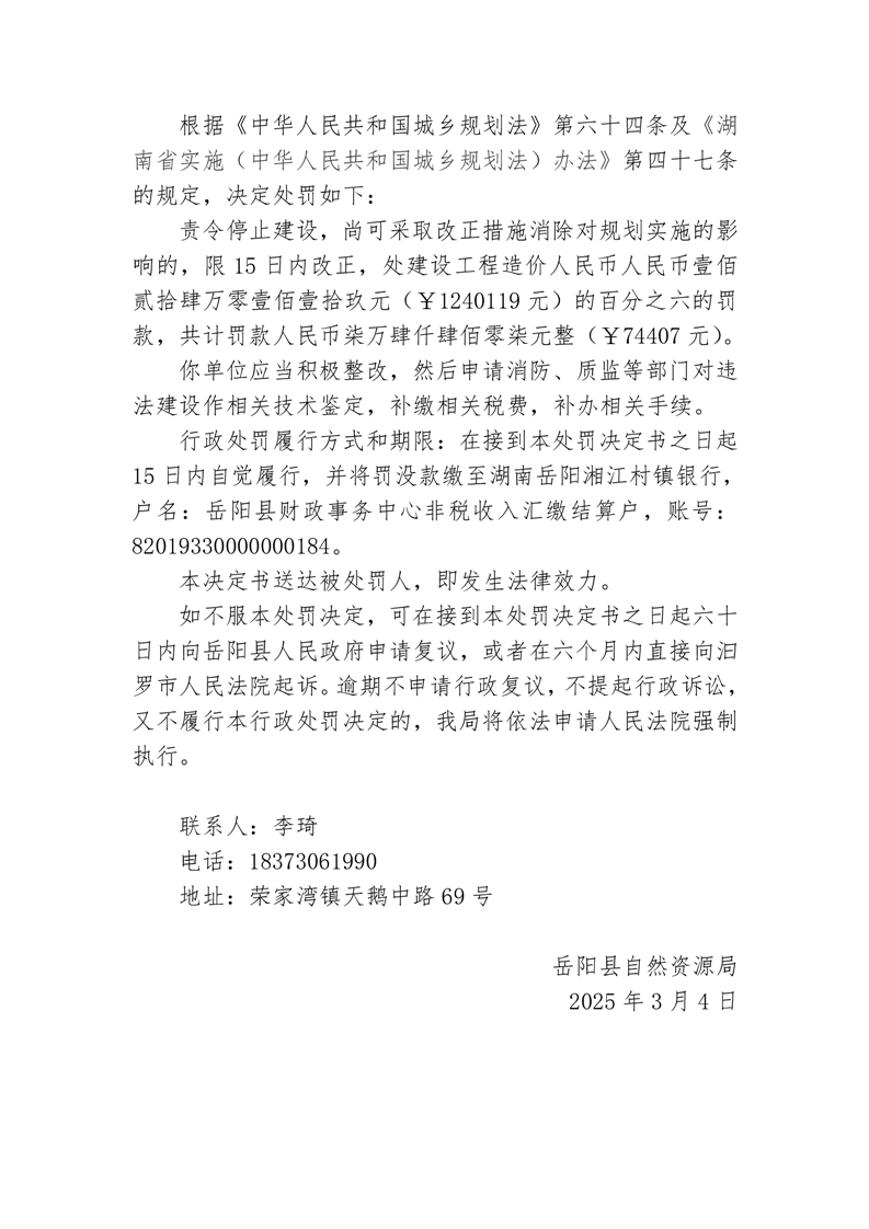 行政處罰決定書 嶽縣自然資罰字〔2025〕4 號