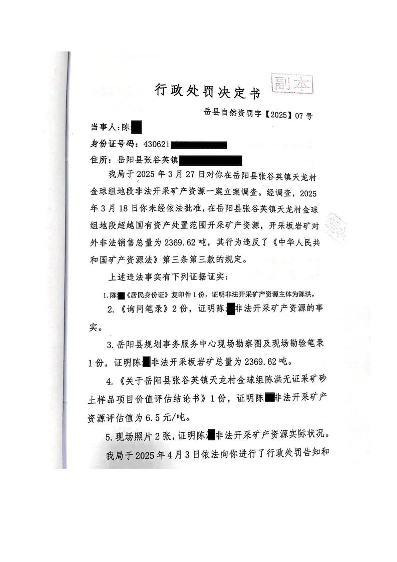 行政處罰決定書嶽縣自然資罰字(2025)7 號