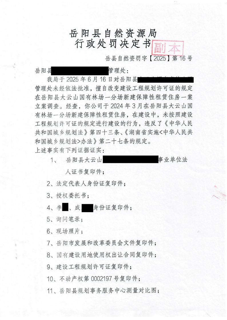 嶽陽縣自然資源局行政處罰決定書 嶽縣自然資罰字【2025】第16號