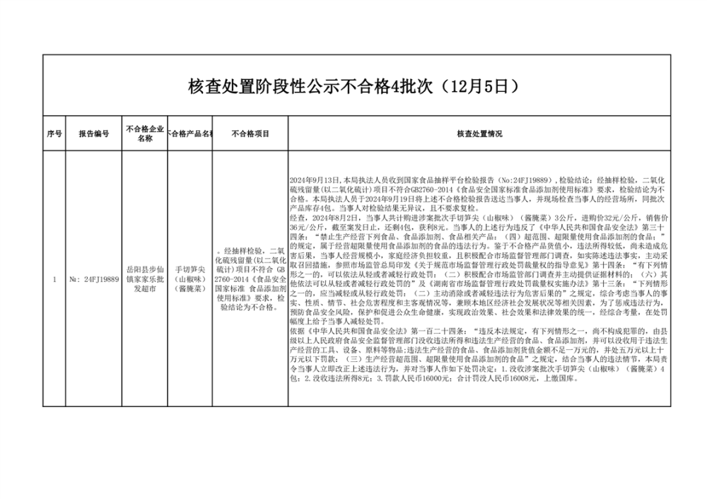 核查處置信息公示(2024年12月5日)