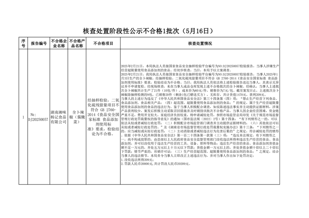 核查處置階段性信息公示(2025年5月16日)