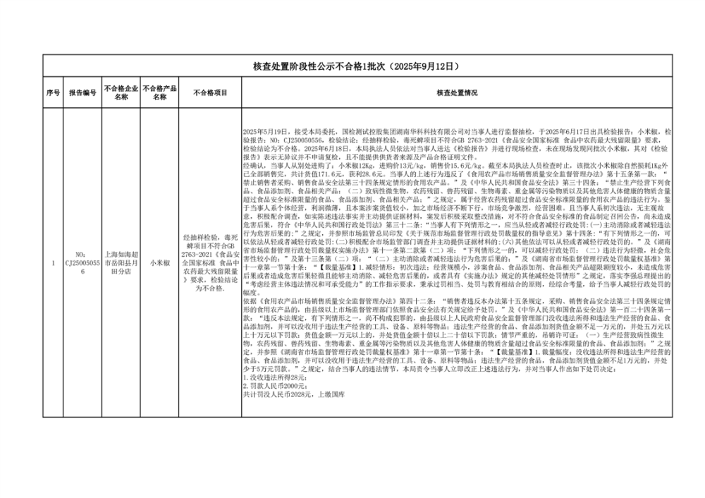 核查處置階段性信息公示(2025年9月12日)
