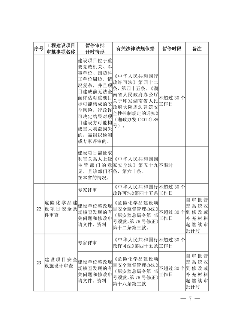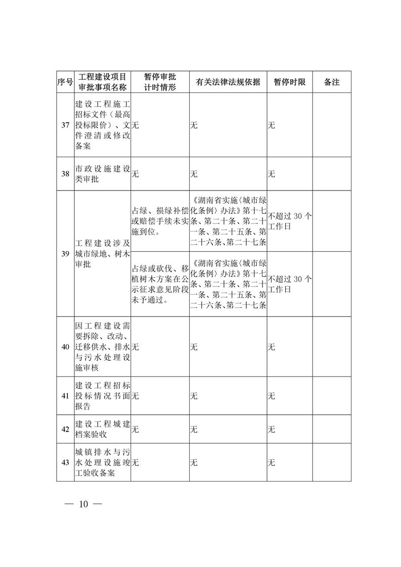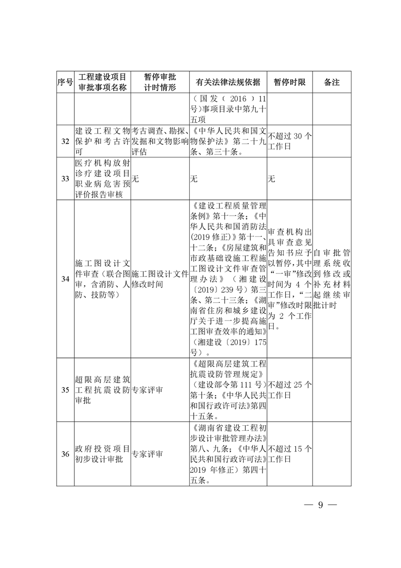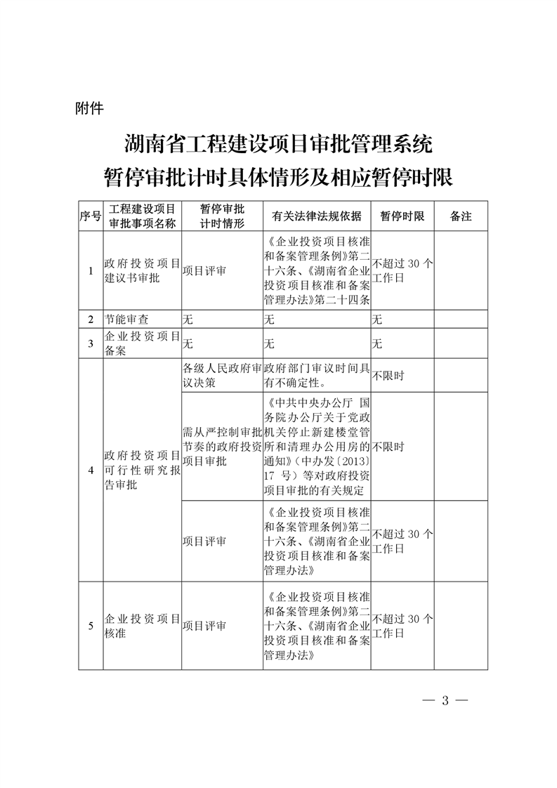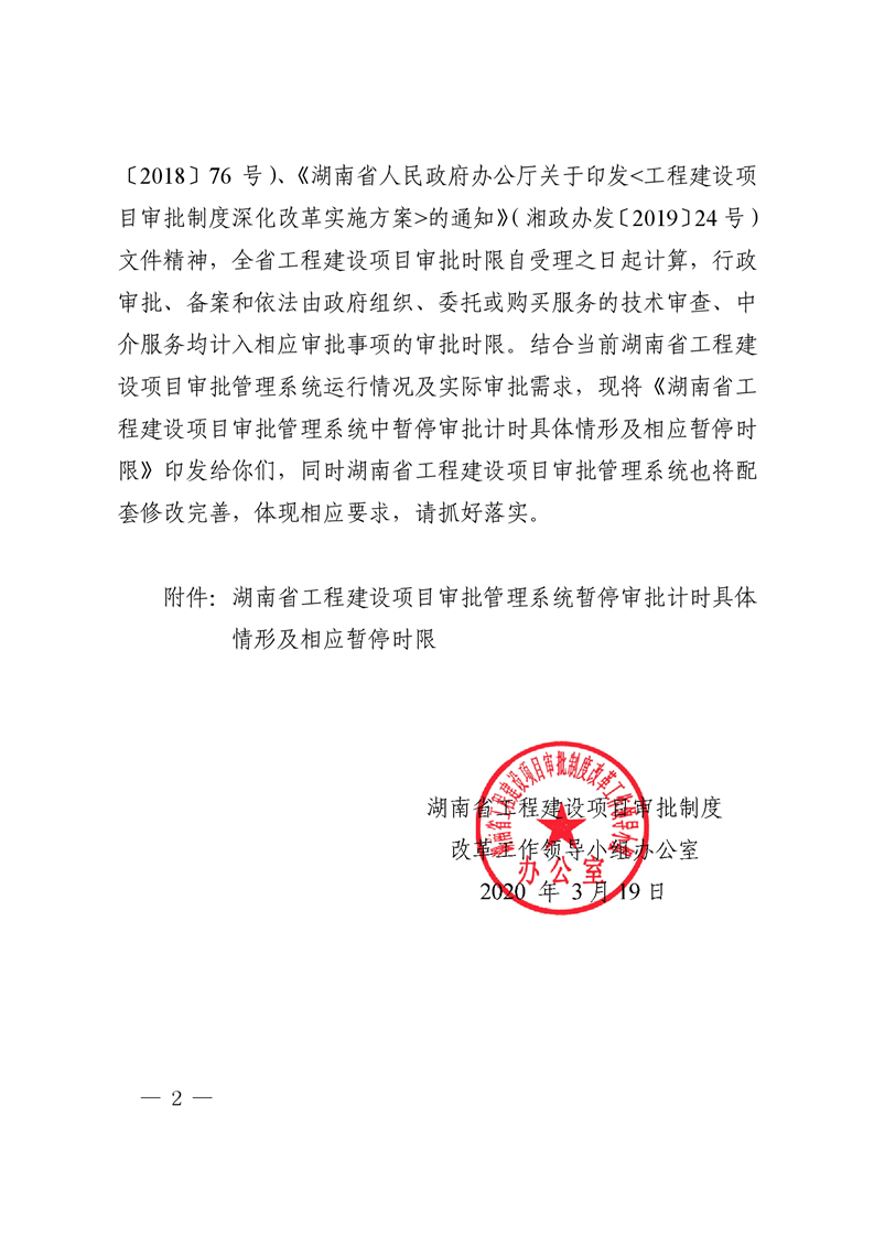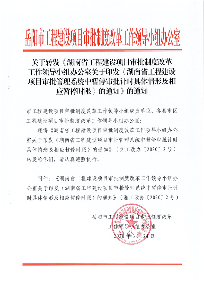 關於轉發《湖南省工程建設項目審批管理係統中暫停審批計時具體情形及相應暫停時限》的通知
