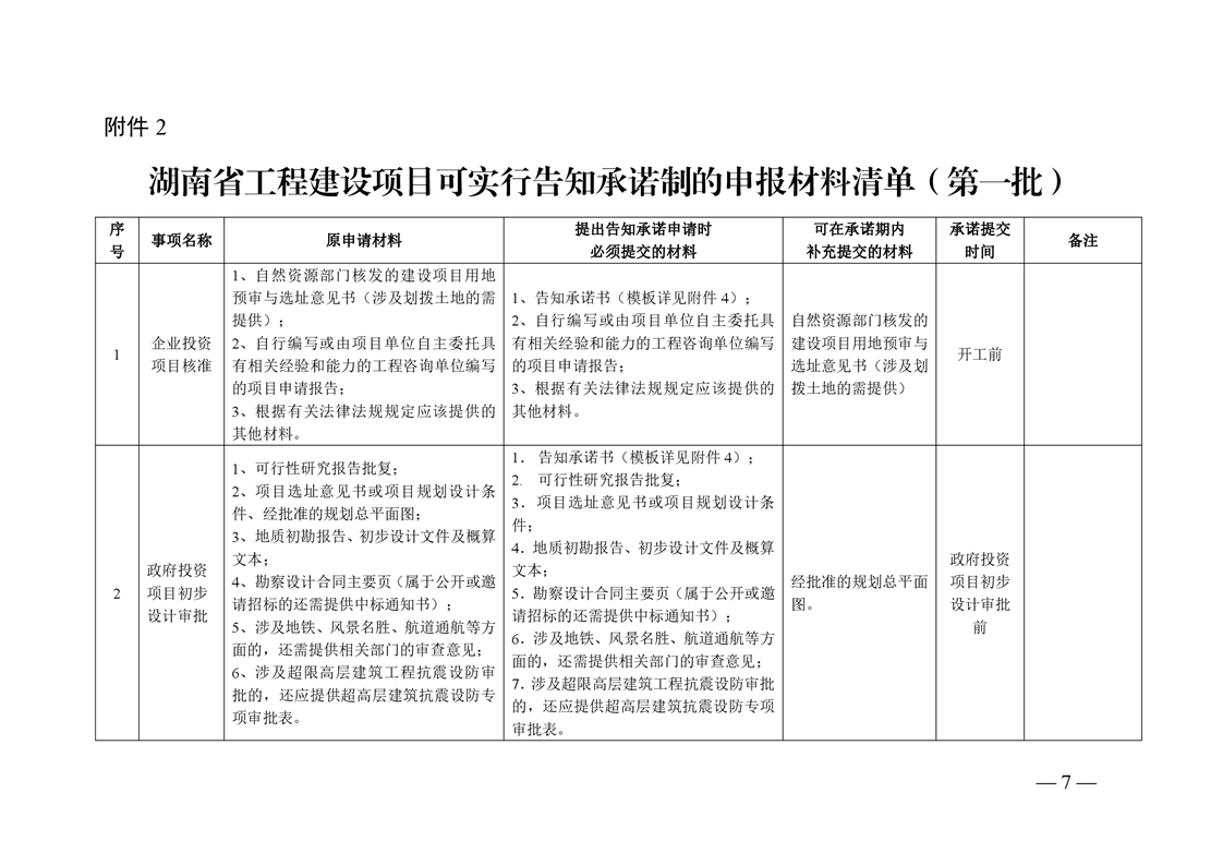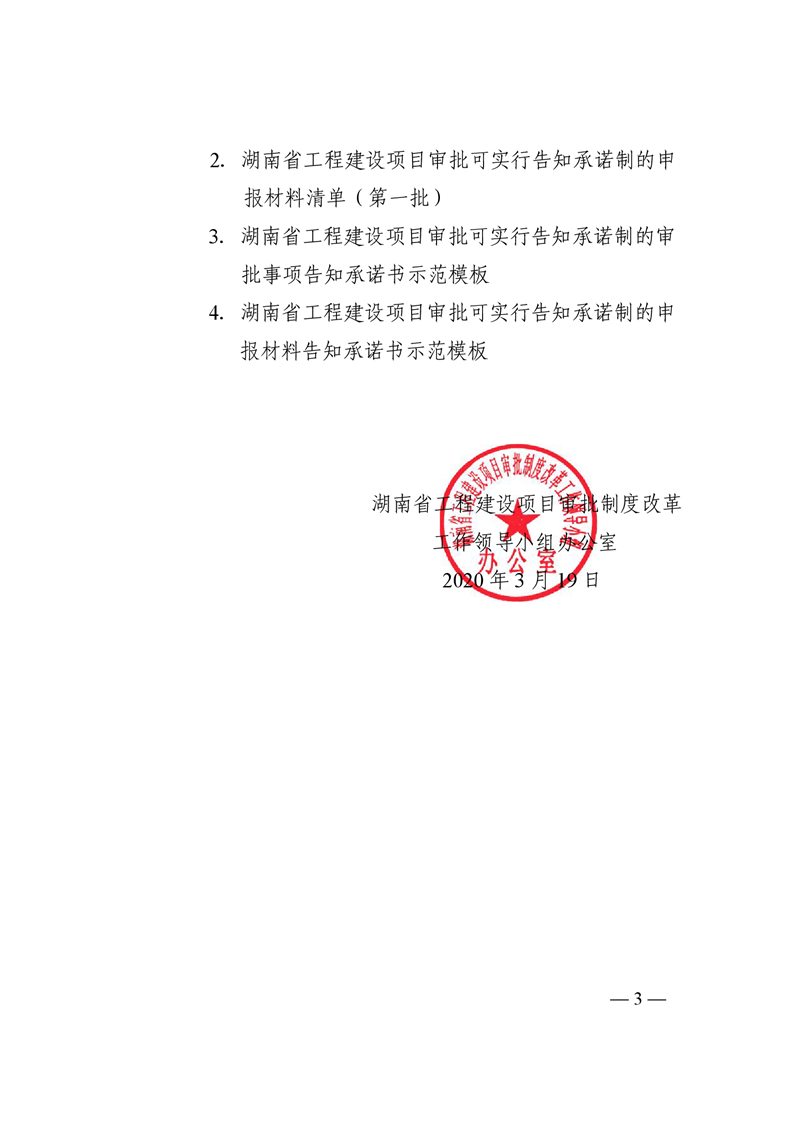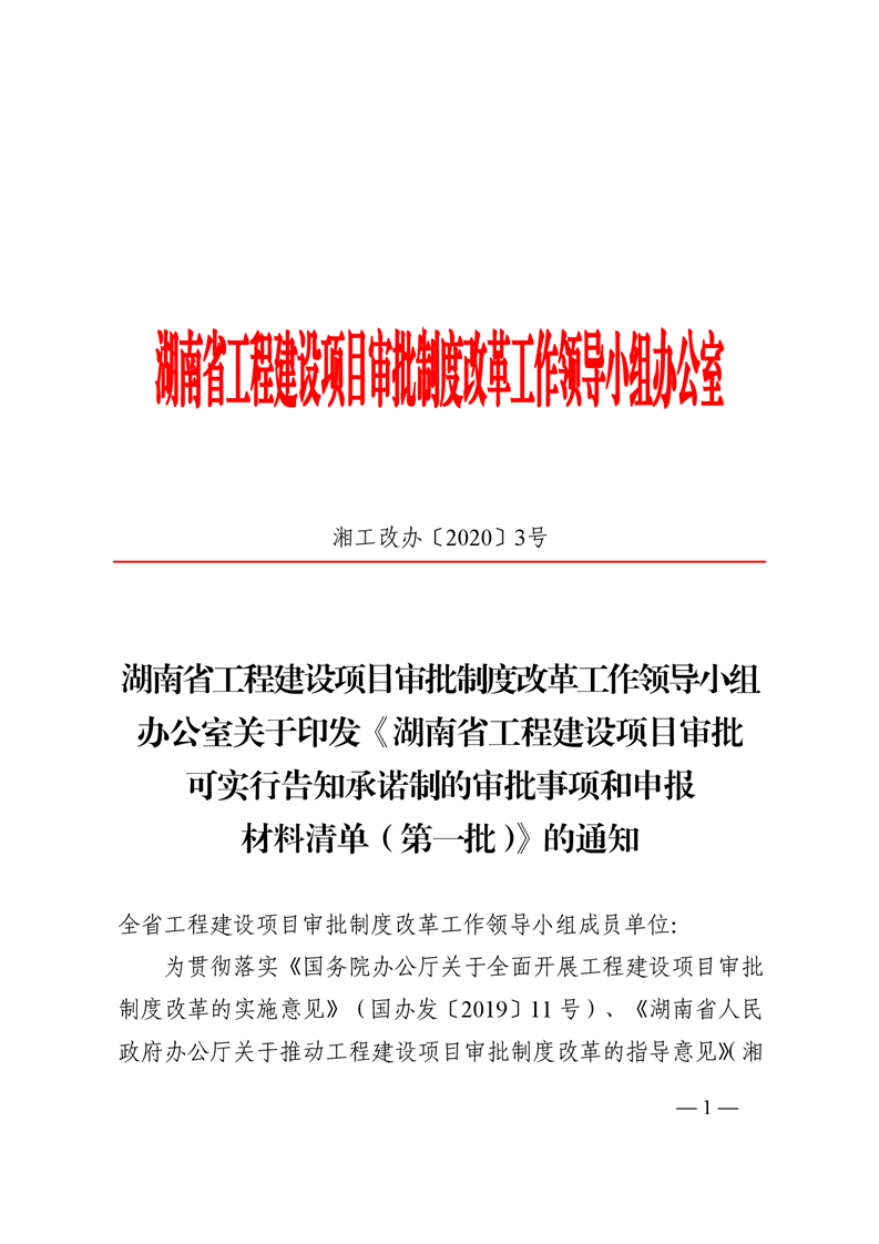 關於轉發《湖南省工程建設項目審批可實行告知承諾製的審批事項和申報材料清單(第一批)》的通知