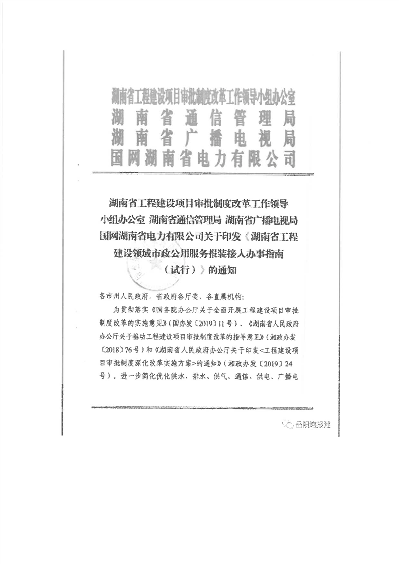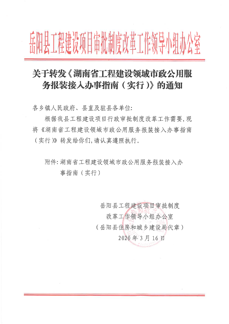 關於轉發《湖南省工程領域市政公用服務報裝接入辦事指南(實行)》的通知